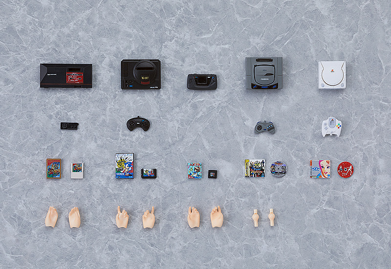 各款遊戲軟體則分別為:阿歷克斯小子奇幻世界大冒險、音速小子、魔法氣泡、VR快打、音樂遊戲太空第5頻道,連遊戲片包裝都完整復刻!讓喜愛 SEGA遊戲的玩具人可以收藏賞玩。於「GOODSMILE線上商店」購買,附有特典「Mega Drive 搖桿1個+專用手掌1組」。