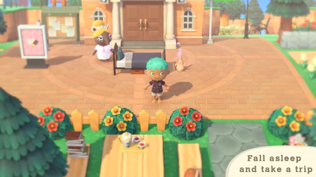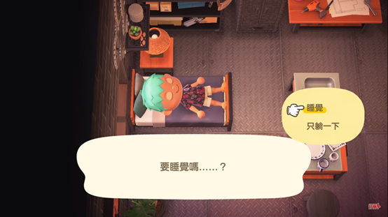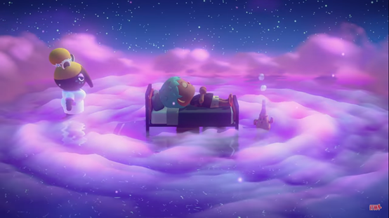 然後動森終於能「全面啟動」了,家裡的床鋪周公ONLINE,可以藉由睡眠進入夢境,夢遊到別人島上(到底哪招XD)