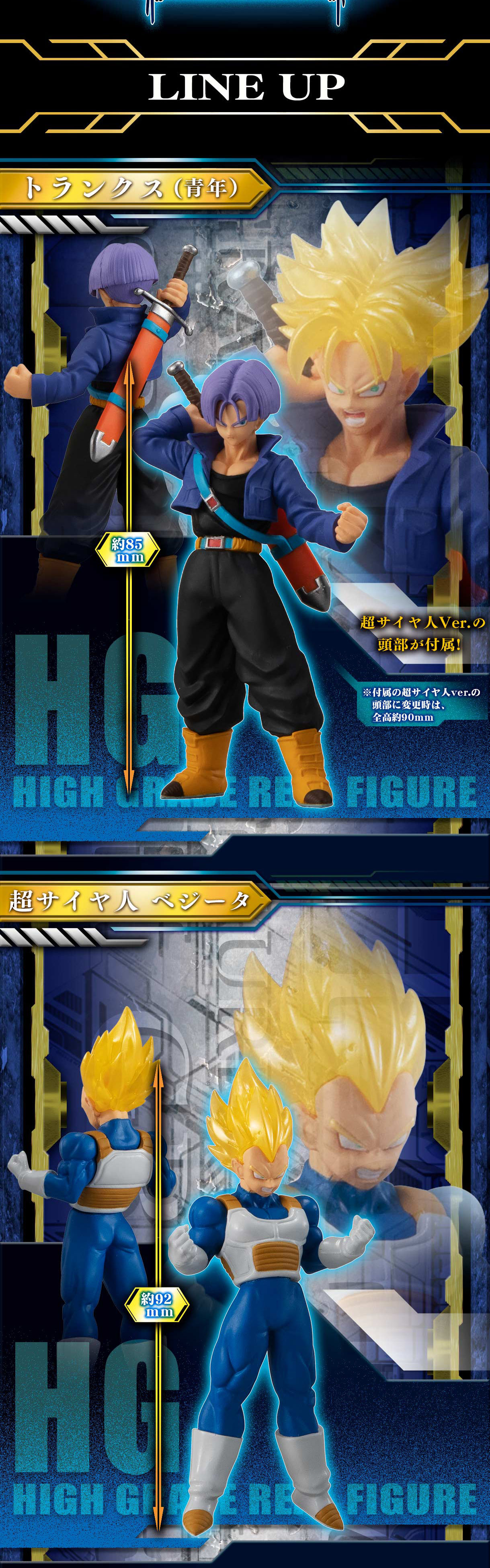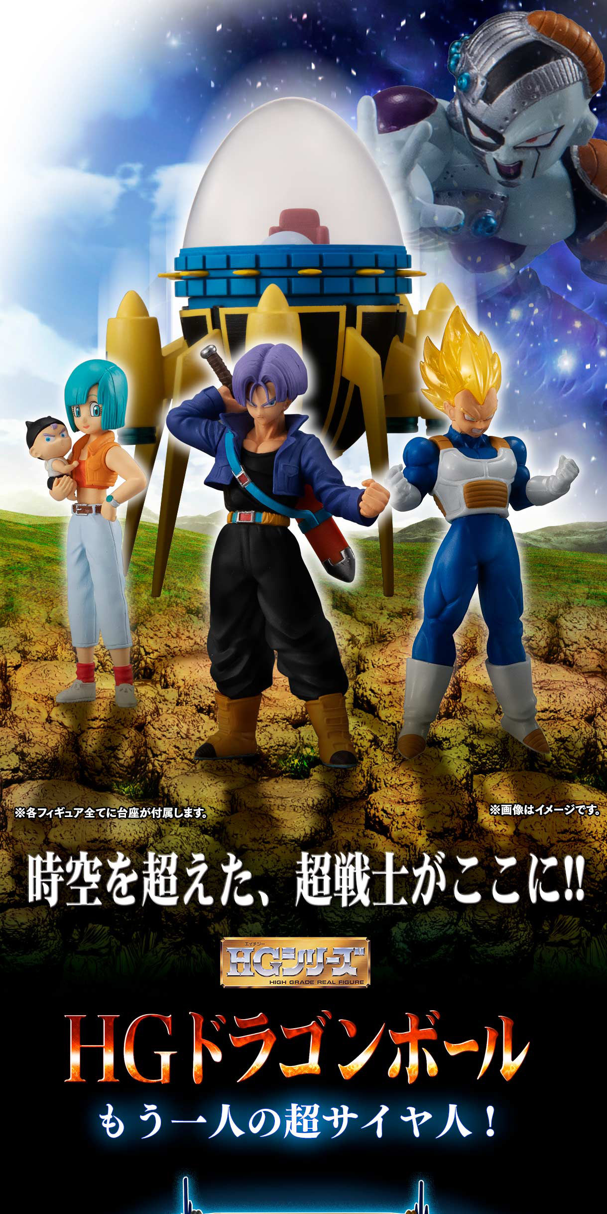 「HG 七龍珠Z 另一個超級賽亞人篇」,以驕傲的賽亞人王子貝吉塔(達爾)一家人為主軸,收錄有:可以替換超級賽亞人頭雕的「特南克斯」、「超級賽亞人貝吉塔」、「布瑪 & 嬰兒特南克斯」,電燈泡「機械弗利沙」以及可以掀開蓋子看見精緻內部細節的載具「時光機」。除了身高特別矮小的弗利沙僅高 52mm以外,人物尺寸約為 80 ~ 95 mm,時光機更是高 148mm,喜歡龍珠系列的玩具人不要錯過這次的角色收藏~