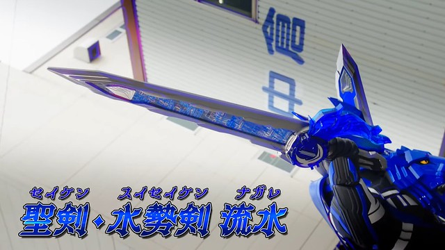水屬性的二騎夥伴「假面騎士BLADES」則是新堂倫太郎藉由聖劍「水勢劍流水」、腰帶「聖劍SWORDRIVER」、Wonderide Book「LION SENKI」變身而成。
