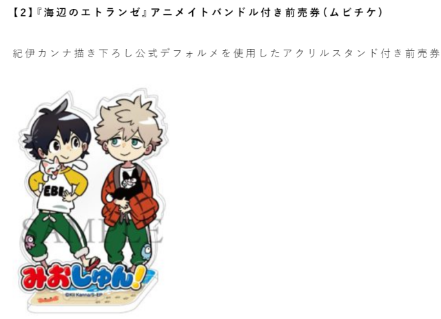 《海邊的異邦人》是紀伊カンナ創作的日本漫畫,並有衍伸廣播劇與劇場版動畫,劇場版由雲雀工作室製作將於9/11在日本上映,主題曲「ゾッコン」由MONO NO AWARE所創作,目前也已開放預售票購買,有壓克力人型立牌與鑰匙圈同捆包可做選擇。