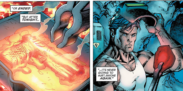 另外一個極可能會出現在新蝙蝠俠電影的故事線裡頭的漫畫情節,是去年出刊的《Detective Comics》第1000期紀念號中,由電影導演Kevin Smith編劇的一個小故事—— 《Manufacture for Use》。