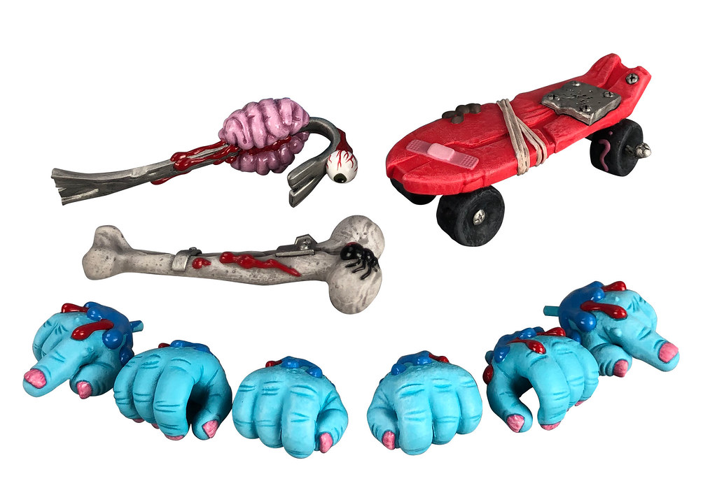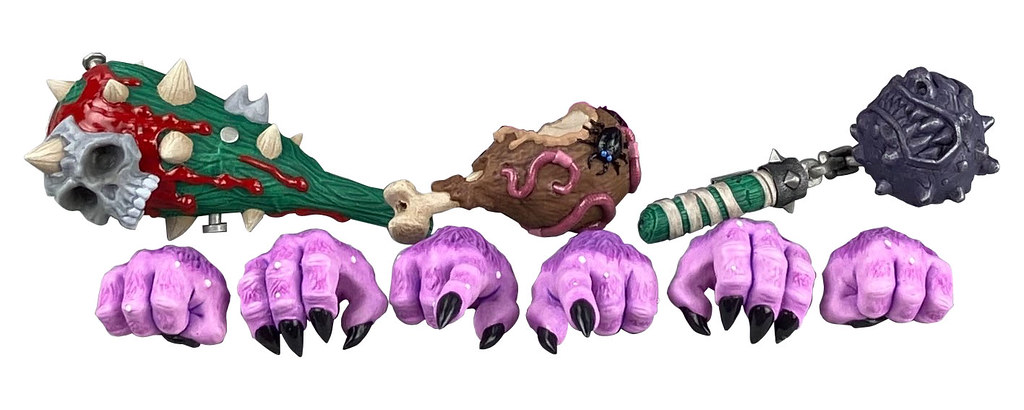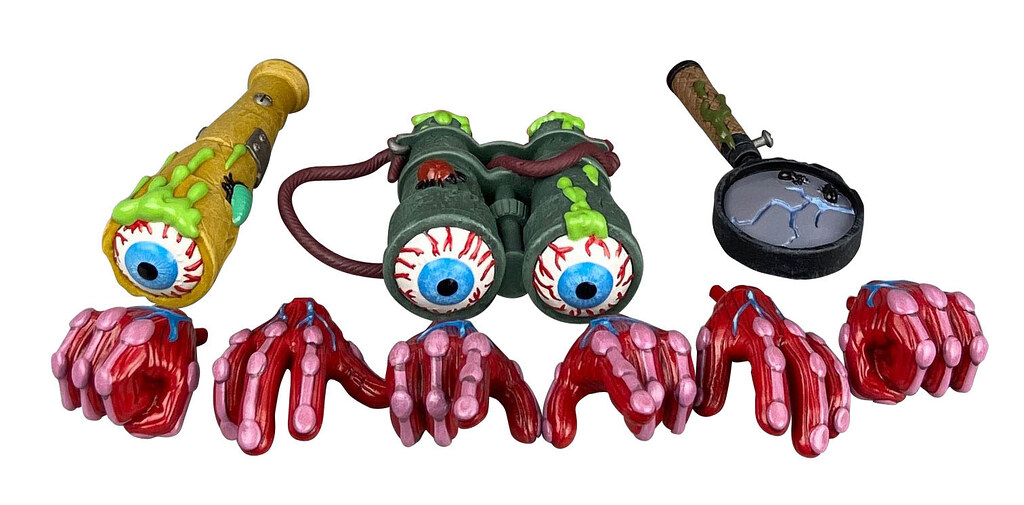 除了搶眼的頭部之外,這次四款可動人偶在軀體設計的精彩程度也可說是不遑多讓!像是 Horn Head 表面的毛髮質感與縫合痕跡、Oculus Orbus 有如超大型巨人的肌肉纖維、Splitting Headache 外露的骨骼,以及 Bruise Brother 遍佈全身的傷痕跟裝備,完美展現了 Madballs 的獵奇、噁爛風格與 James Groman 設計中的元素,配件也都相當有意思,趕快來看看!