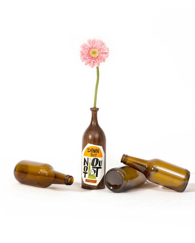 比以往稍大卻輕巧的雕塑尺寸,無論放置於椅子或書架上也恰到好處。花井笑稱:「希望這個正在喝悶酒的失敗中年漢能讓你會心一笑。」,同時推出高 8.7 寸的同名木瓶作品,為木雕人物手持酒瓶的實物原大,非常適合作家居藝術擺設。