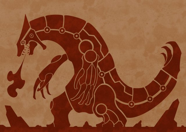 例如這張代表著大地的寶可夢神獸固拉多,同樣以紅色代表色作為上色主體,其噴火的模樣結合了古代壁紙的特色,就有種透過這張圖像在說著古文明的故事一樣,令人感到生動與無比震撼。
