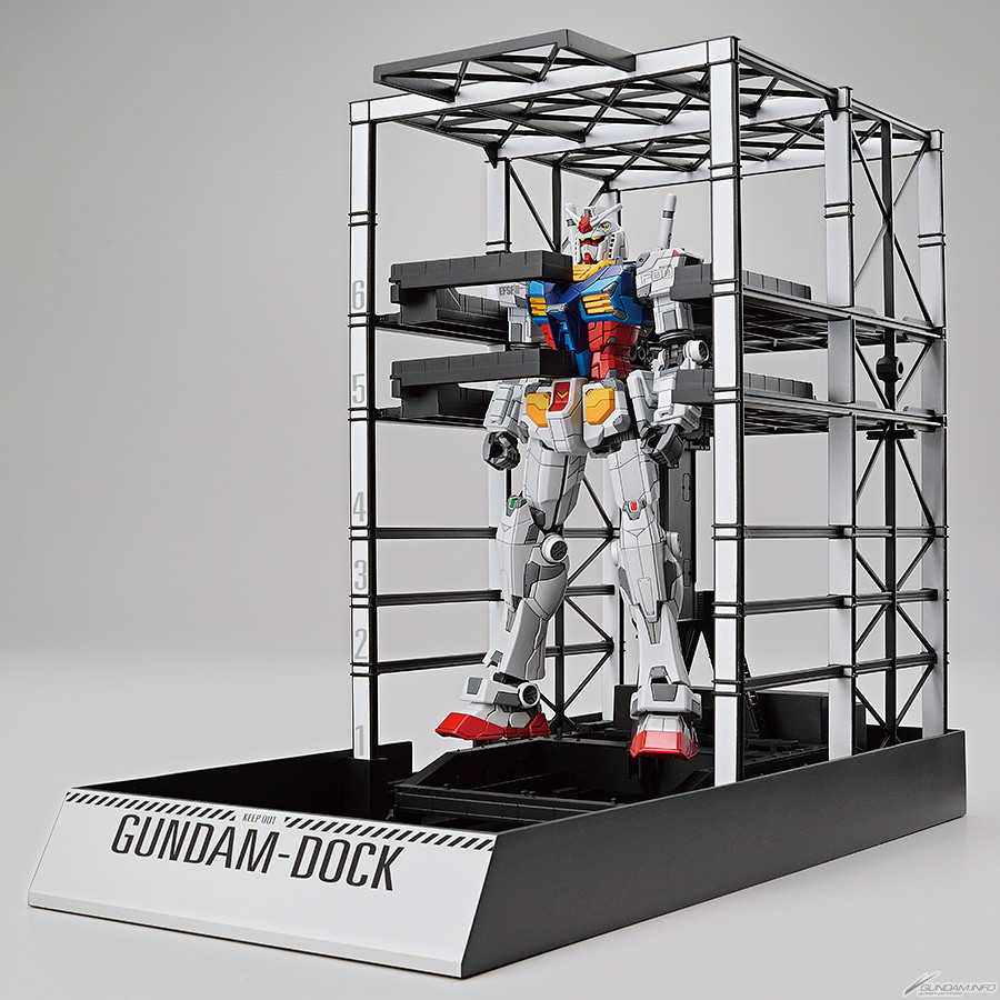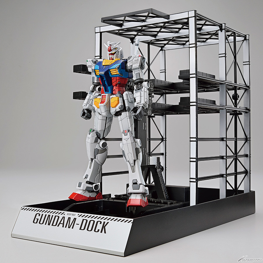 「1/144 RX-78F00 鋼彈&鋼彈格納庫」則是以 1/144 比例重現橫濱初鋼,全高約125mm。套件同樣具備濱初鋼特色的裝甲刻線、靈活的可動關節,能夠像實物般做出歩行、舉起雙手等動作,以及搭配光束步槍、光束軍刀、盾牌的戰鬥姿勢。商品中還附上等比例的鋼彈格納庫,與鋼彈本體結合後彷彿就能重現橫濱山下埠頭的實物場景!