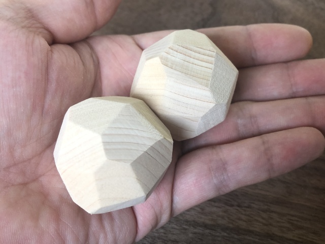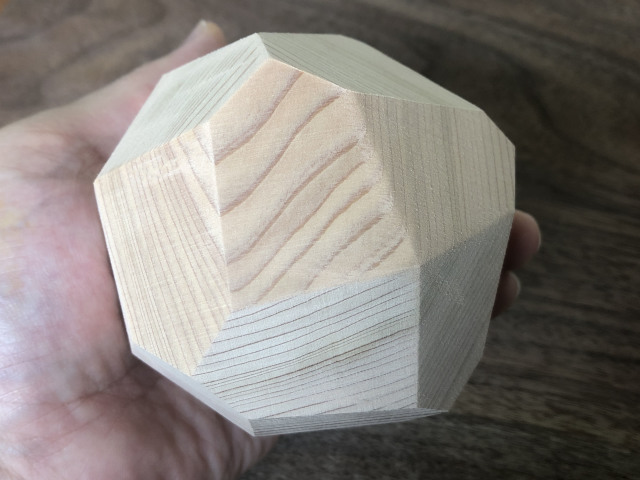 另外對於這個「24面體」的構造,木工作家Mokuichi(@mokuichi)想試著雕塑看看,推主自己也將設計圖公開讓他挑戰,事後也公開了他以檜木和柳杉木雕塑的玩成品。
