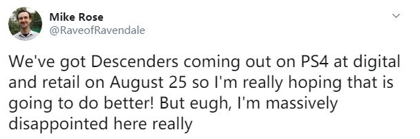 計畫8月25日發行的《速降王者》,原期待能在PS4大放光彩,但現狀讓人太失望,且PlayStation並無提供任何協助,僅發布一篇blog進行報導。