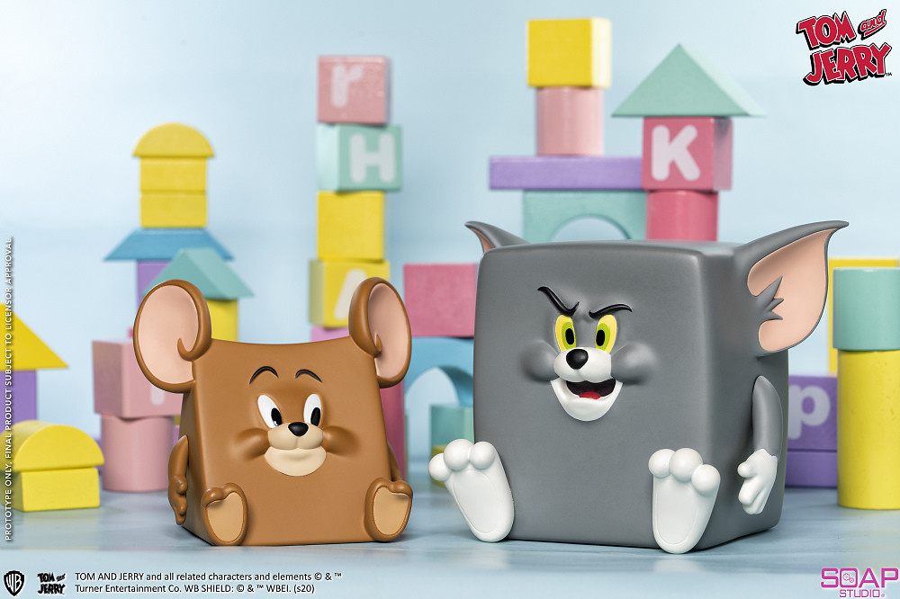香港玩具廠牌 Soap Studio在推出「漢堡包胸像」、「起司月亮水晶球」與「三劍客」等人氣商品之後,日前再度發表以《湯姆貓與傑利鼠》為主題的造型系列新作:「湯姆貓與傑利鼠 趣怪造型人偶 」(TOM AND JERRY-ACTION MISHAP FIGURE),參考售價為HKD $449,現正於官網開放訂購中,預計於 2020年 10月出貨。