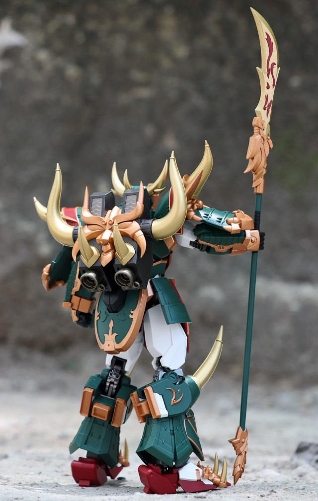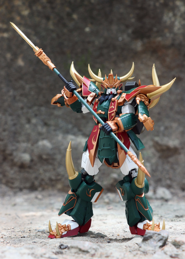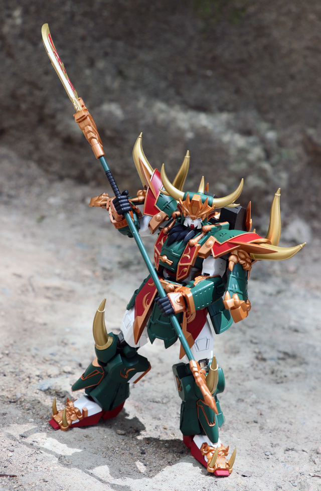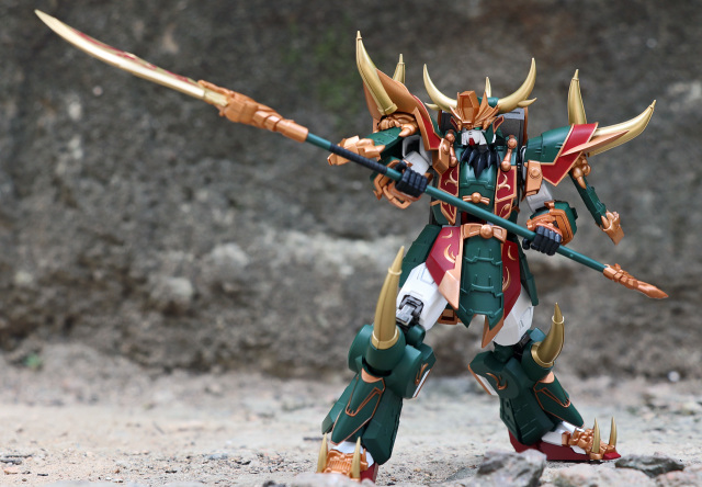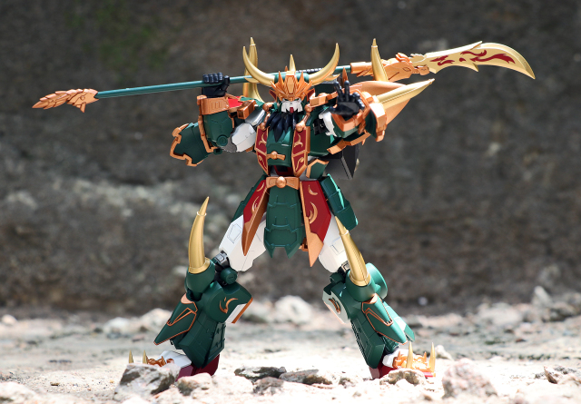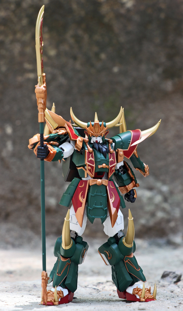 主體全高約 140 mm!先談優點吧!外型不俗,整體由啞白色、兩種金色、墨綠及暗紅等成形色組成。雖然是全上色但總是給人一種偏 "膠" 的感覺。關節緊,除了頭部之外各處的可動性總算在水準以上,但外甲對關節的可動性始終有一定影響。部份骨架為合金材質製作,呈現了厚重感。QC 不俗,比之前劉備和曹操好!