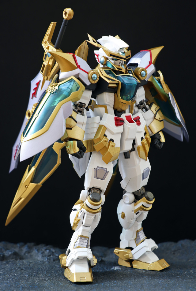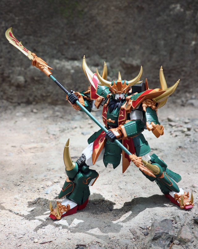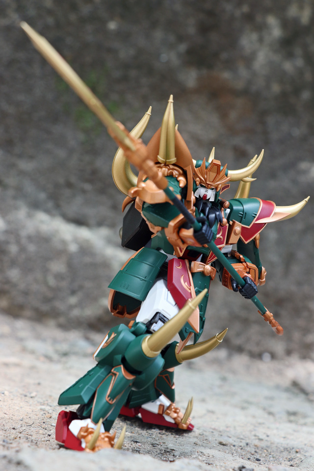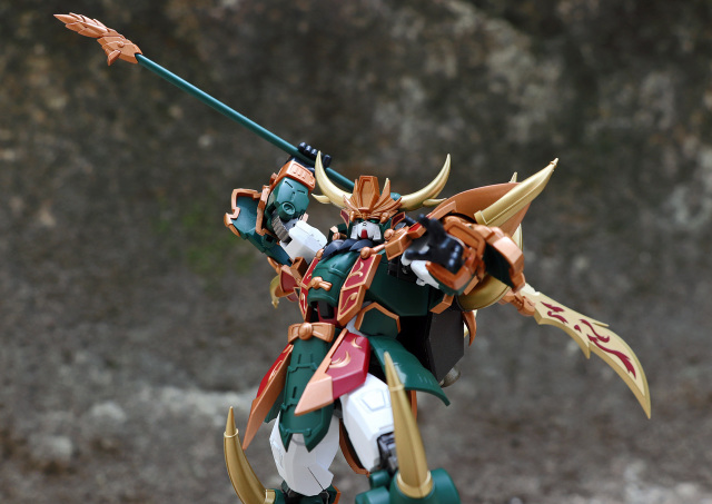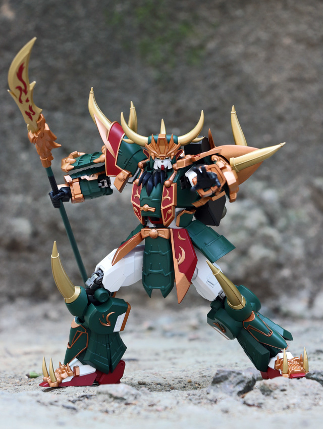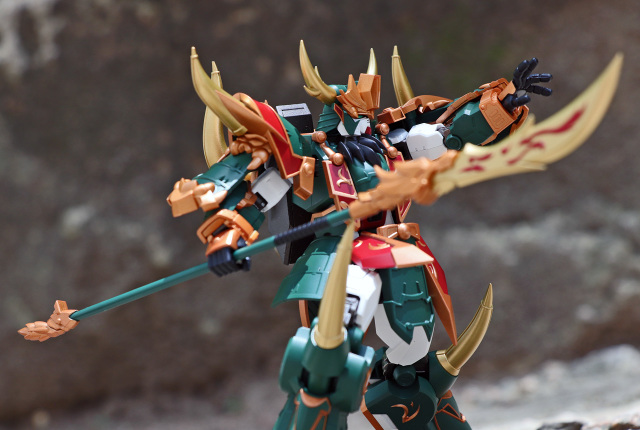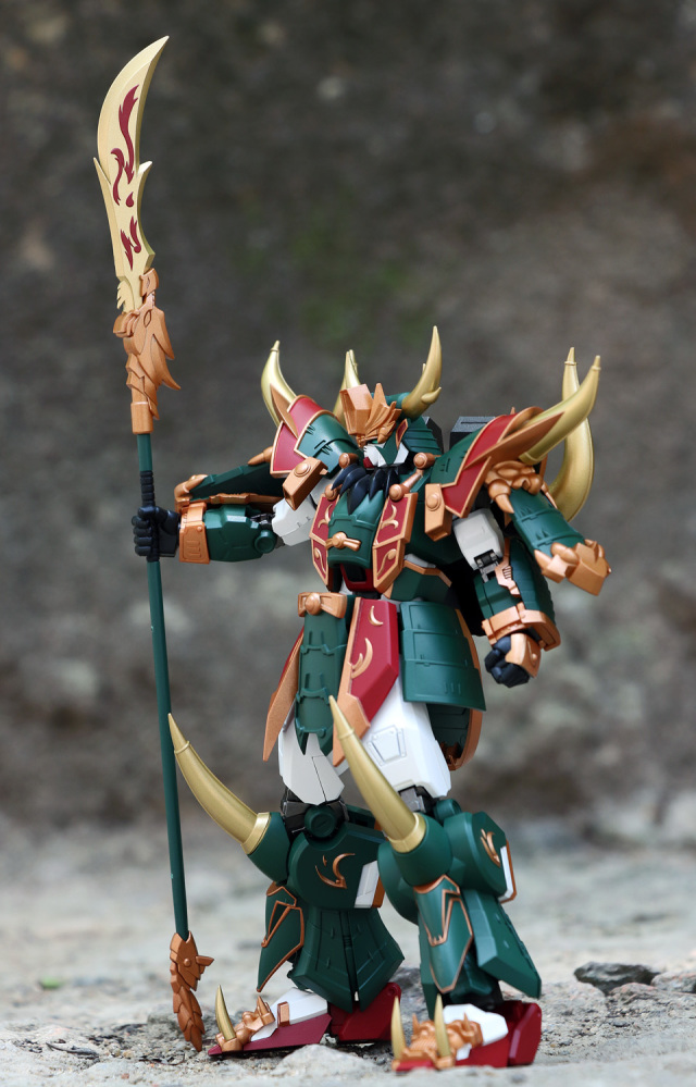 主體全高約 140 mm!先談優點吧!外型不俗,整體由啞白色、兩種金色、墨綠及暗紅等成形色組成。雖然是全上色但總是給人一種偏 "膠" 的感覺。關節緊,除了頭部之外各處的可動性總算在水準以上,但外甲對關節的可動性始終有一定影響。部份骨架為合金材質製作,呈現了厚重感。QC 不俗,比之前劉備和曹操好!
