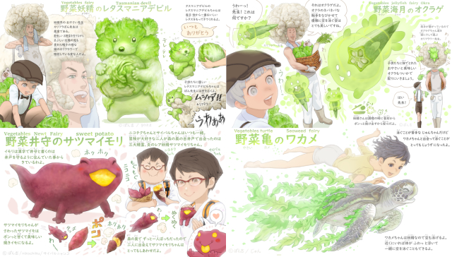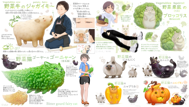 隨著上回轉蛋公司 Qualia 與日本知名繪師「ぽん吉」合作推出了大受好評的「西瓜烏賊」系列轉蛋後,ぽん吉決定趁勝追擊,決定再為「野菜動物妖精」系列推出圖鑑書,希望可以透過這次的販售讓更多孩子喜歡上吃蔬菜這件事。