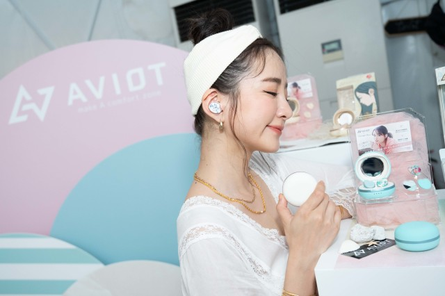 AVIOT台灣總經理土山裕子認為,市面上的耳機設計,大多是偏向男性的科技風格,但是一直沒有專門給女生使用的耳機。此款耳機盒外觀如同女性所使用粉餅盒,一打開外盒可以看到內附鏡面,在佩戴耳機時可以看著鏡面輕鬆調整,此款耳機與其他品牌最大的不同在於耳機變身時尚流行配件,可選購多款不同花色耳機外殼,以每日心情及穿搭進行更換,不需要耳環、戴上馬卡龍造型真無線耳機就是與眾不同的時尚;AVIOT還提供另一個貼心的設計: 此款耳機附有專屬收納袋,耳機使用後直接放在收納袋中,無須擔心是否會刮壞包包內袋兼具攜帶方便。