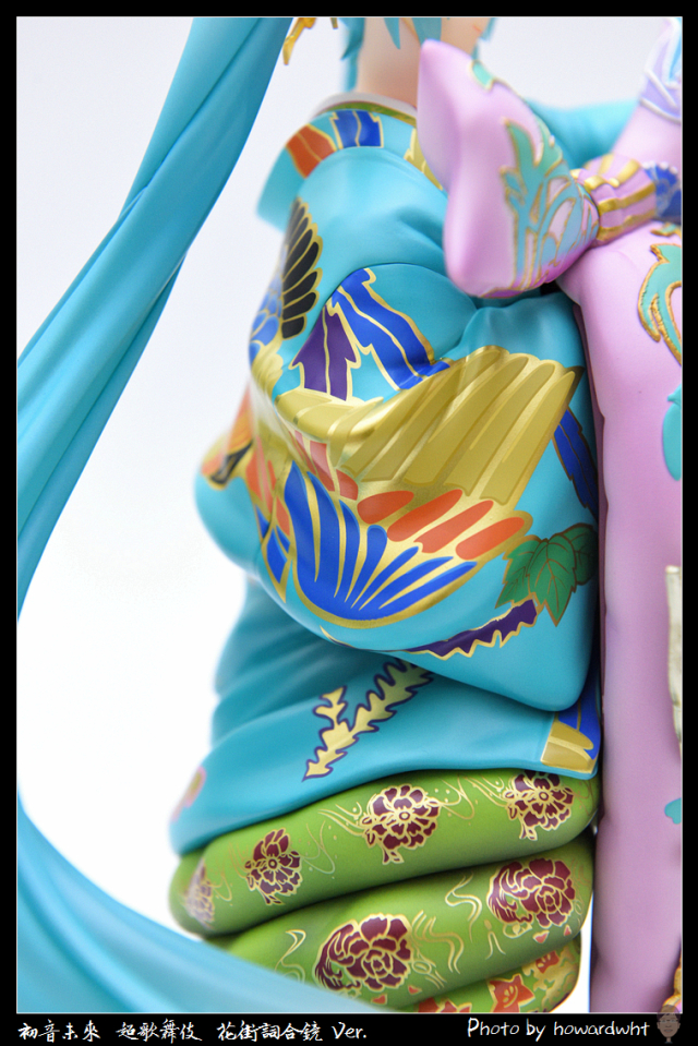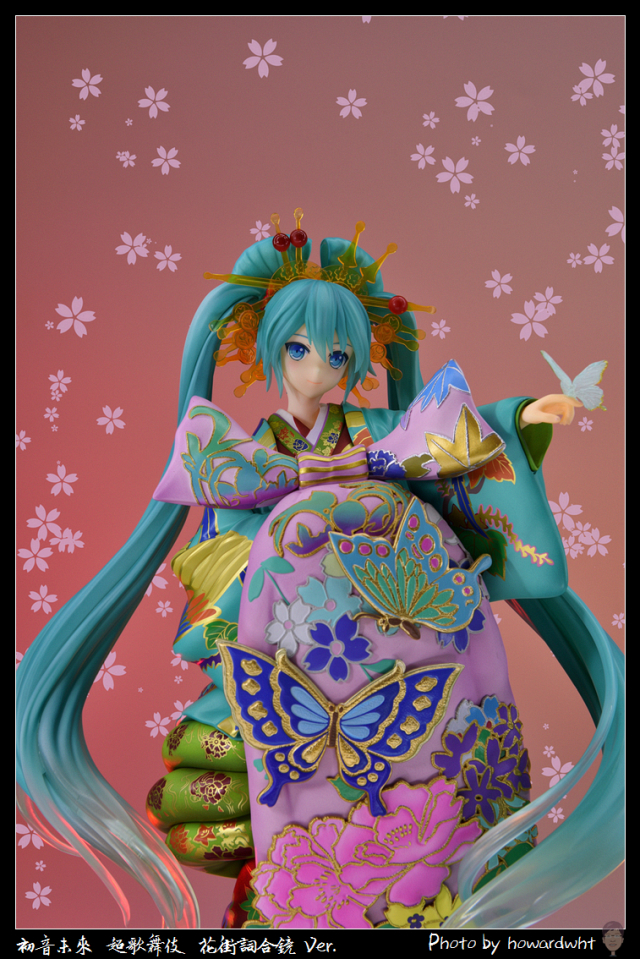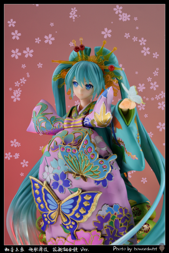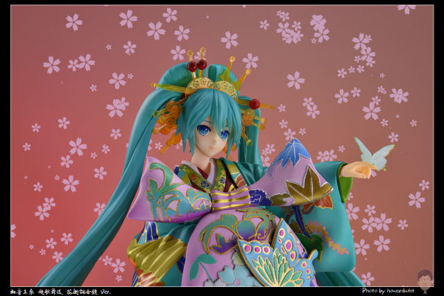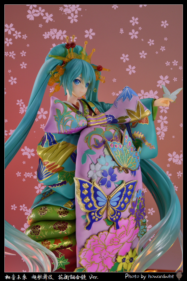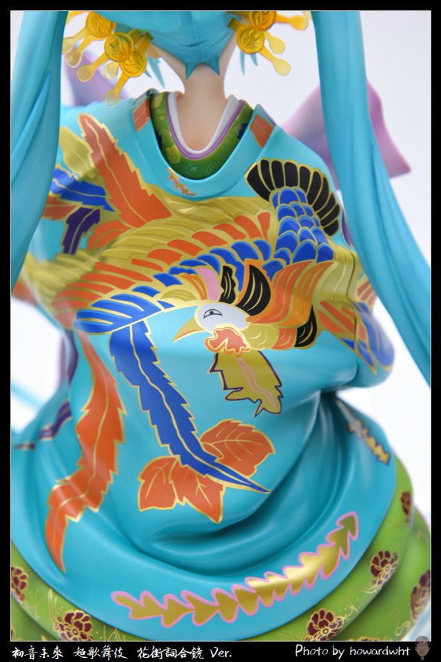 而這個版本的初音以花魁為造型,因此整體服裝是相當華麗,甚至是讓人感覺到誇張的地步