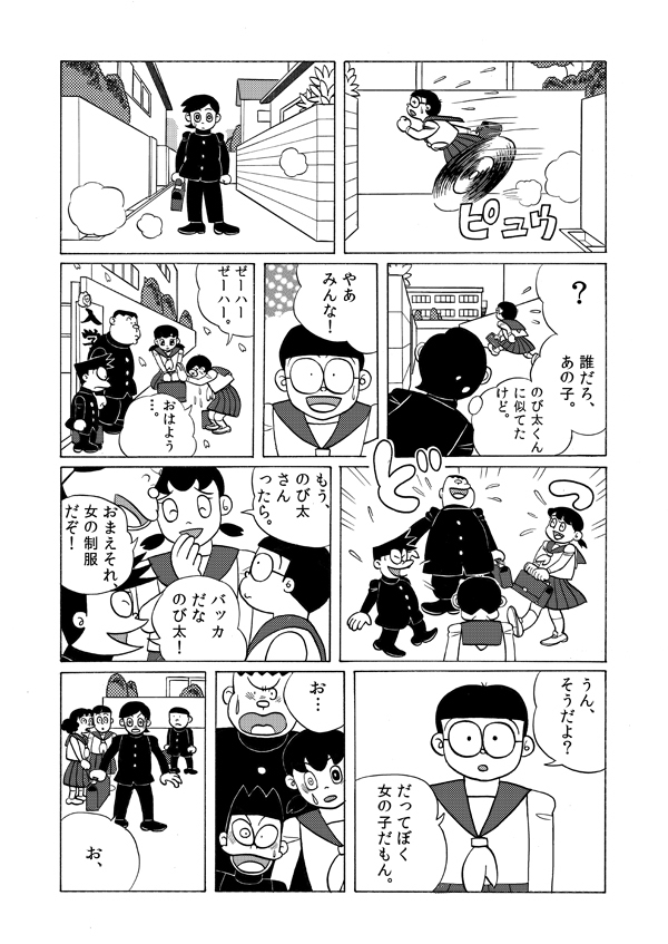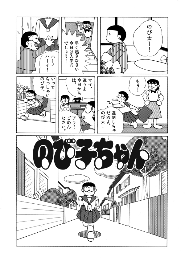 當然過去不論在動畫 TV 或是電影版,我們早已看過無數次的「雄子」出現在小螢幕、大銀幕上,只不過這部同人漫是直接將這個故事中的大雄設定為「她本來就是個女孩子」這件事。