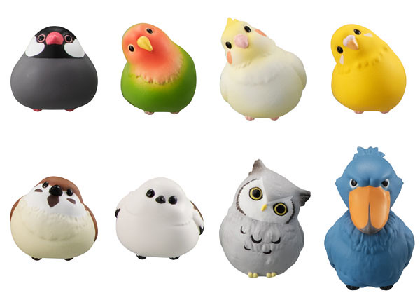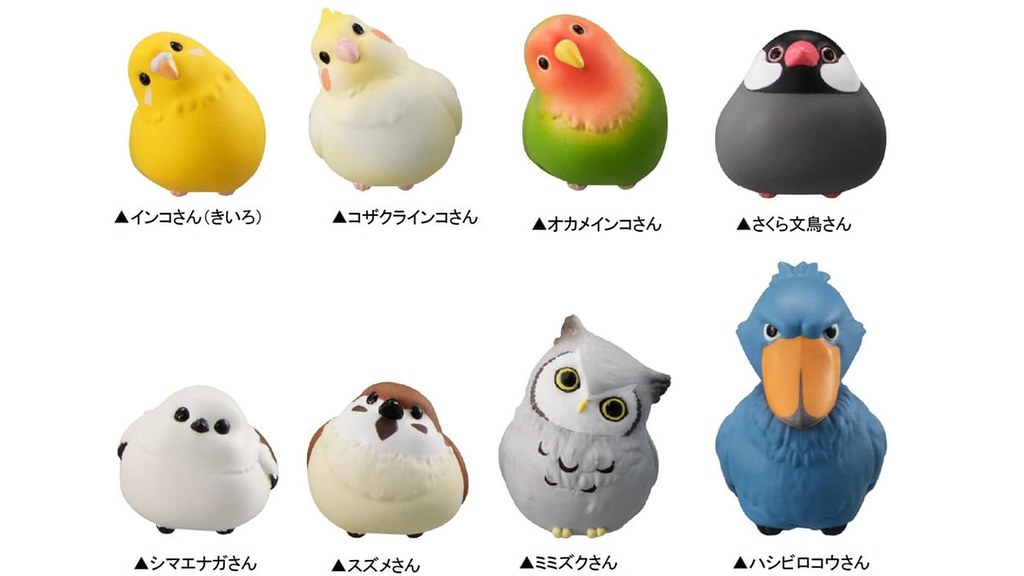 第二彈的八款鳥類分別為:黃色長尾鸚鵡、桃面愛情鳥、太陽鳥雞尾鸚鵡,以及與第一彈互相呼應的黑白文鳥、銀喉長尾山雀、麻雀,和鳥界超人氣的貓頭鷹、鯨頭鸛,圓圓胖胖的身形與大大 Q 版的眼睛~實在是讓人難以招架呀!