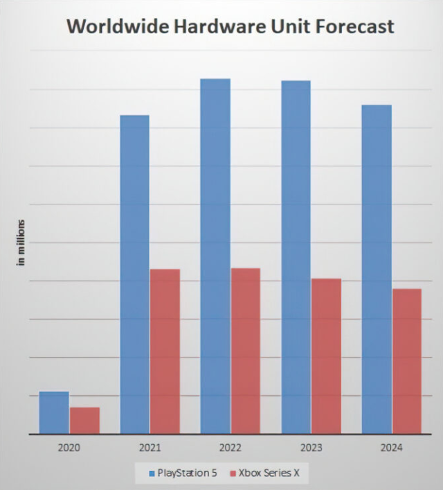 DFC Intelligence數據庫預估主機對決,PS5將會是Xbox Series X的兩倍銷售量,這個對比並未加入任天堂的SWITCH競品分析,但值得關注的是,微軟在Game Pass上的布局將使他的長期收益逐漸顯著,PS5在短期則有所向披靡的優勢,而最後在平台的策略上,微軟的策略將迎向真正的敵人:與任天堂競爭。