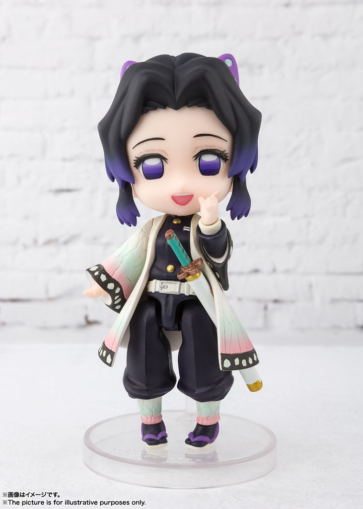 『Figuarts mini』系列以全高約 9 公分的尺寸再現鬼殺隊中高人氣的「柱」角色,使用具備光澤色彩的 Glittering EYE 製法表現生動閃亮的大眼睛,脖子、肩部、髖部設有可動關節,能夠微幅調整動作,配件中則附上替換用手掌零件、專用台座。