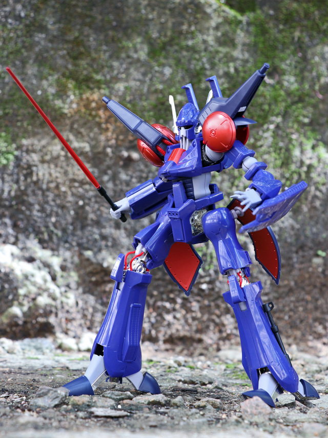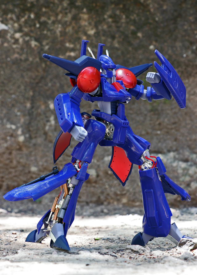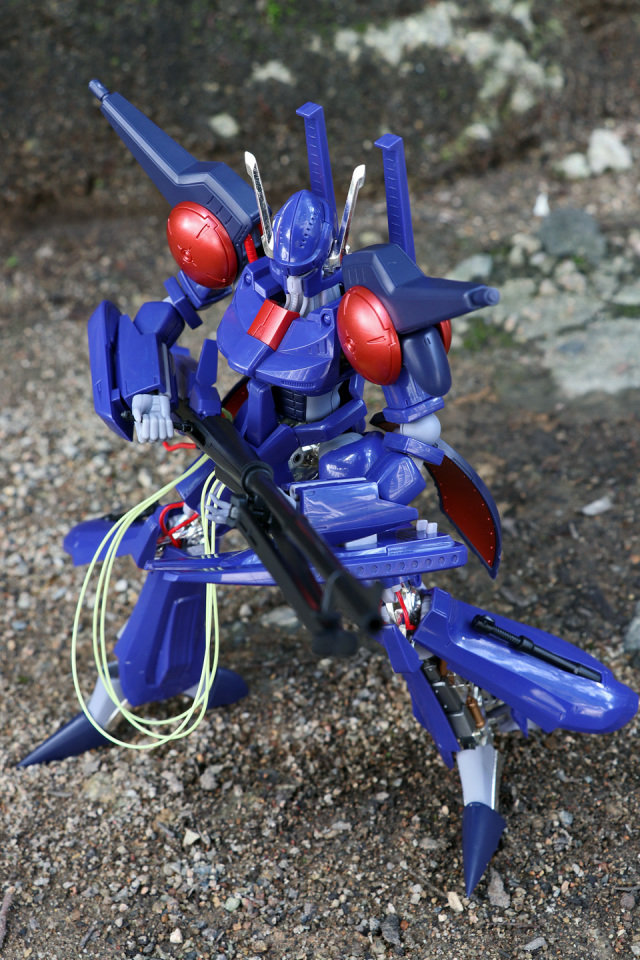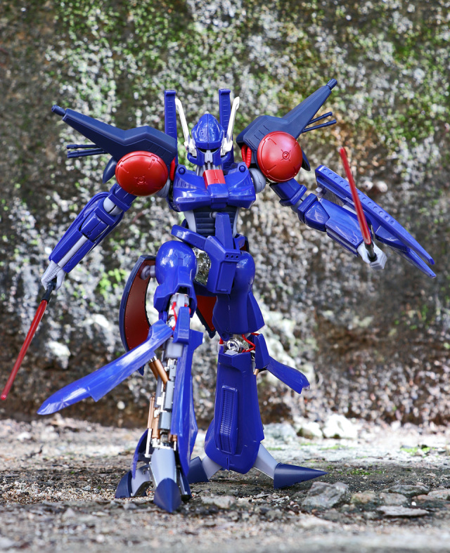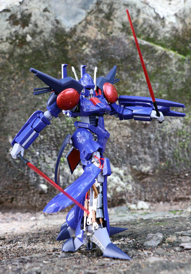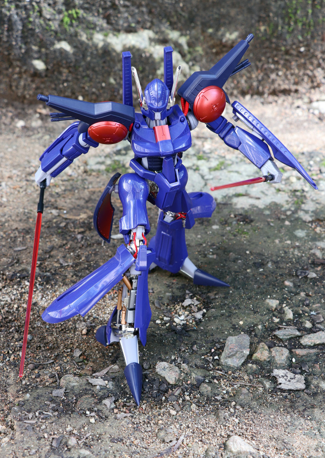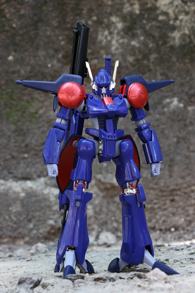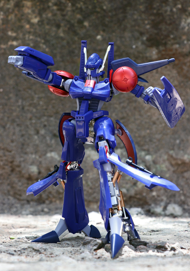 還是談回玩具吧!主體全高約 225mm,以灰色、金屬紅及光澤藍色為主。配件包括可接疊破壞光束砲、交換用手部配件三對、光束軍刀、多用途武器夾艙及榴彈發射器等等。玩具本身沒有令我失望,刻線細緻,造型乾淨利落!可動性方面除胯部及腳碗之外基本上是沒啥可以挑剔,加上關節實淨,擺設任何師氣姿勢皆無難度。QC 很好,外型比例一流,唯配色上藍色是塑料噴上光澤塗層,給人一種略為 "膠" 的感覺。另肩部喉管長度不足,容易有 “穿崩” 的情況及胯位和腳踝的可動性不高!以上。