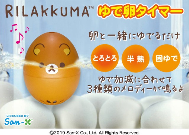 而在近日,日本拉拉熊商店則推出一款以拉拉熊家族為圖樣的蛋形煮蛋計時器,與一般的計時器一樣,設定好你想要的熟度後,跟雞蛋一起放入水中開煮並且等候,等到你所計時的時間時,拉拉熊蛋型計時器就會透過「唱歌」來呼叫你蛋已經煮好了。