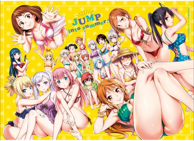 在這期的《週刊少年Jump》上還有刊登在本雜誌連載著《妖幻三重奏》並且在先前連載過《出包王女》系列而為人所知的矢吹健太朗大濕所特別繪製的JUMP連載陣全女角泳裝大集合跨頁彩圖海報!不禁讓讀者們喊著:「真香!」