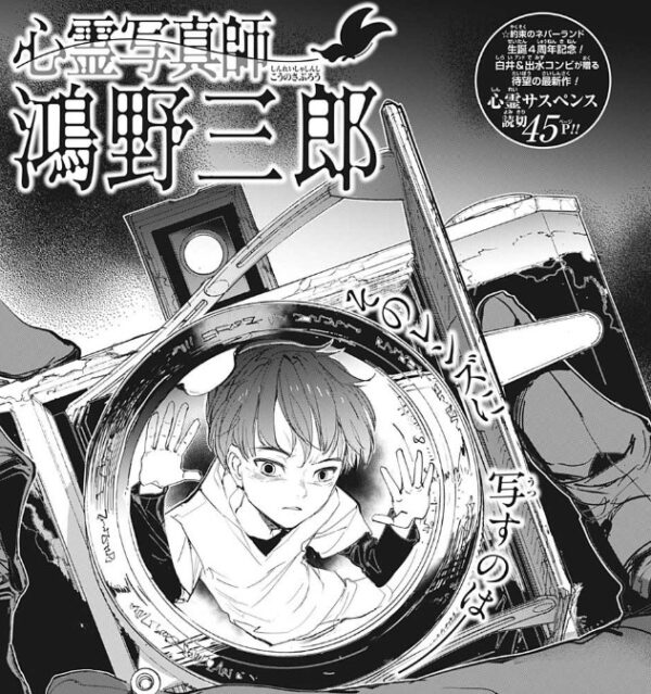 在本日 8 月 11 日發售的《週刊少年Jump》第 36・37 期合併號上刊登了在 6 月完結的作品《約定的夢幻島》原作者白井海芋與作畫出水ぽすか共同創作的新作短篇漫畫《心靈寫真師 鴻野三郎》。