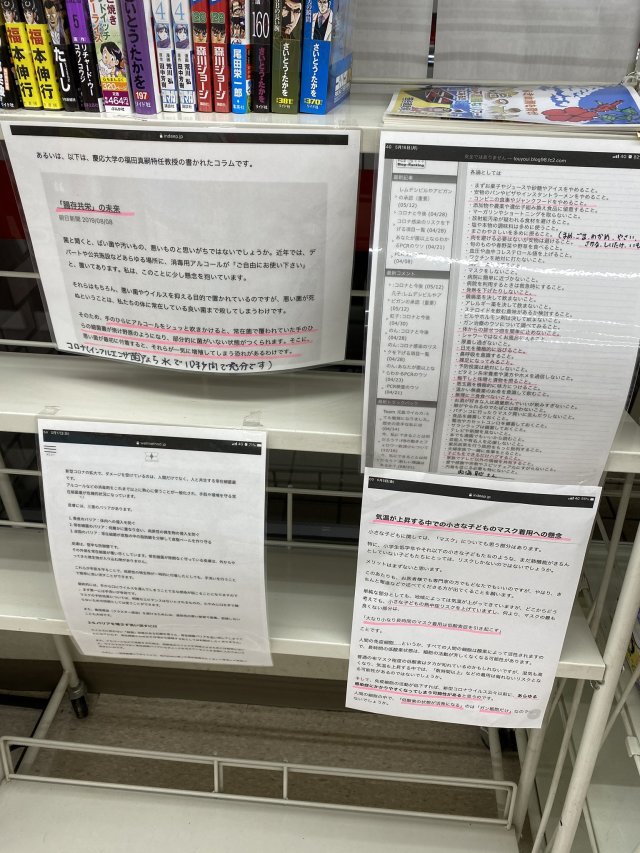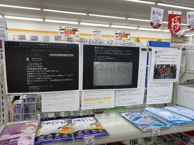 根據日本媒體報導,位於山形縣的某一間便利商店的店外門口就張貼著白紙黑字的宣言傳單,標題上頭還寫著「在店裡並不需要戴口罩」的字眼,甚至表示人會因為長期戴口罩而造成免疫力下降、中暑、致癌等不實言論。