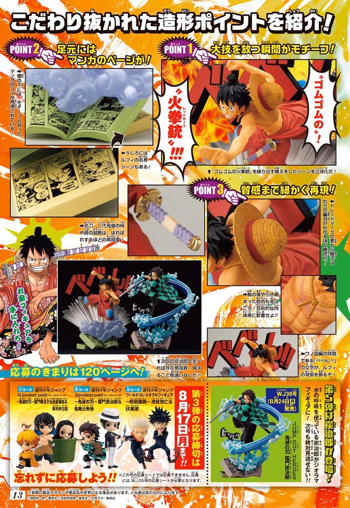 在 2020 年的《週刊少年Jump》「エクストリーム フィギュア(Extreme Figure)」應募活動中,只要把該期 Jump 的「應募卷」跟回函寄回預購,就能獲得限定版本的景品,而本次應募活動第四彈、冠上「JUMP OUT HEROS」之名的魯夫是以和之國的「魯夫太郎」造型登場,高約 15 公分,以魯夫準備施展「火拳槍」的瞬間製作,在臉部表情與上身肌肉線條的形塑、服裝的飛揚動感,以及草帽的紋理、二代鬼徹的刀柄......等都有細緻表現!
