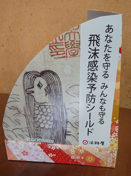 ▼在左右兩側的扇形隔板上還寫著「飛沫感染予防シールド」,以及有著祛除瘟疫代表的日本妖怪「阿瑪比埃」