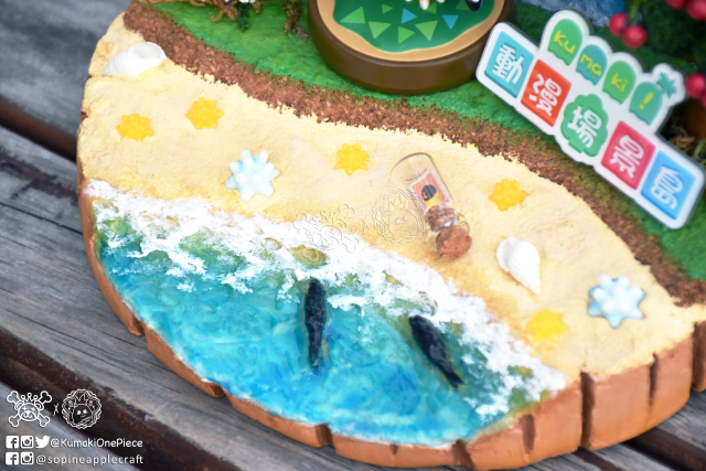 島民必經階段,不停釣魚開圖鑑和賣魚,用魚模型做出魚影效果,令人想入飛飛,究竟是鱸魚還是鯊魚?沙灘亦配上不同物件,而星星碎片關燈後會有夜光效果;瓶中信的DIY也不少得,每天也要在沙灘拾起來啊!