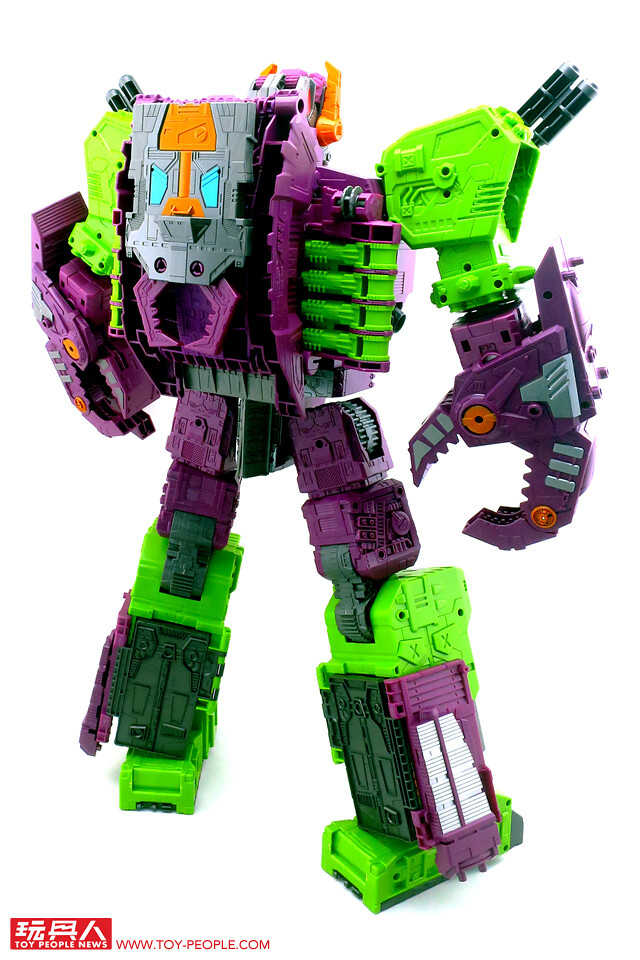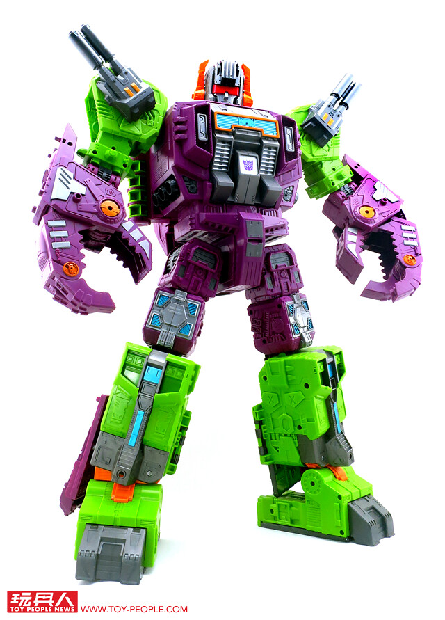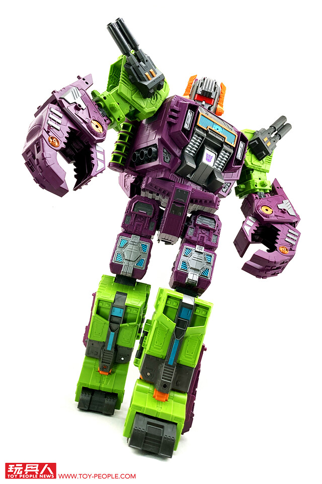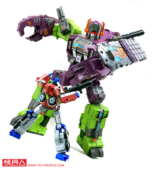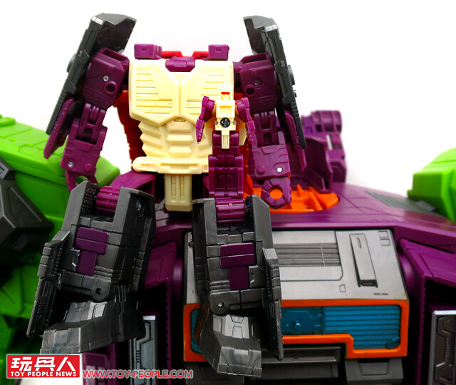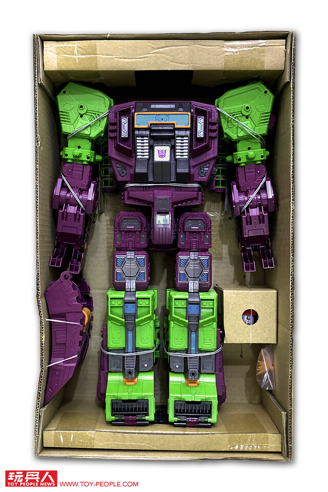 除此之外,這位頭領巨人的可動性更可以說是泰坦級基地金剛的集大成,優秀的貼地機構、高穩定性的齒輪關節、新增的低頭關節等設計都讓人在把玩的過程中驚豔連連,超重手的巨人尺寸更是讓老粉絲心滿意足,不論是造型、可動、或是變形各方面,都取得了極佳的平衡,絕對是不容錯過的重量級佳作!那麼接下來,就讓我們的開箱報告,來和各位一睹這款新版恐怖大帝的霸氣風采吧!