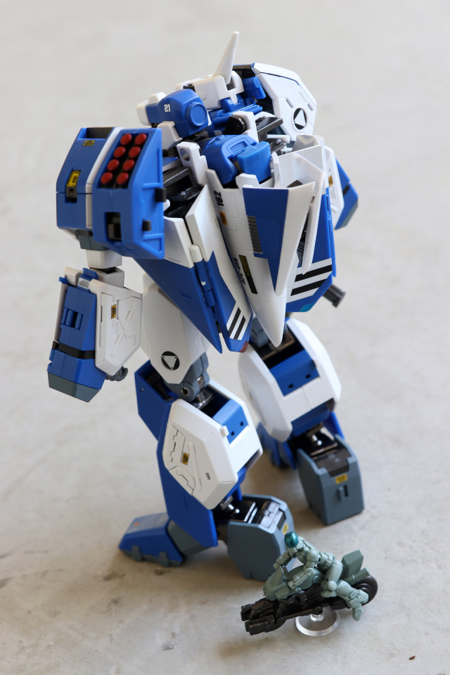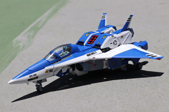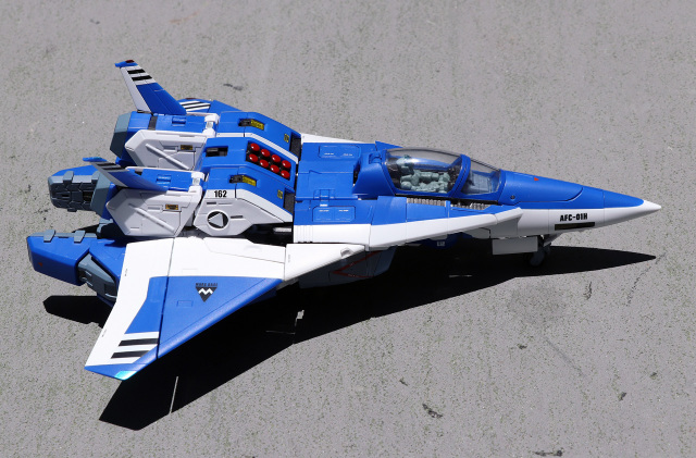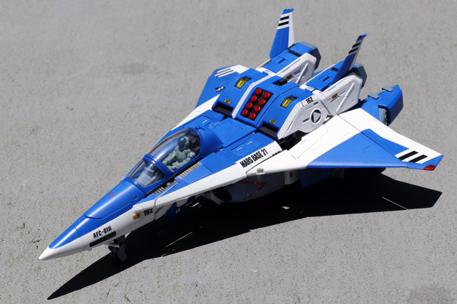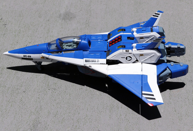 全長約 210mm (戰鬥機形態) / 頭頂高約 110mm (中間形態) / 頭頂高約 160mm (機械人形態)。配件包括光束炮, 飛彈發射器, 1/48 莫斯比達人偶及台座。