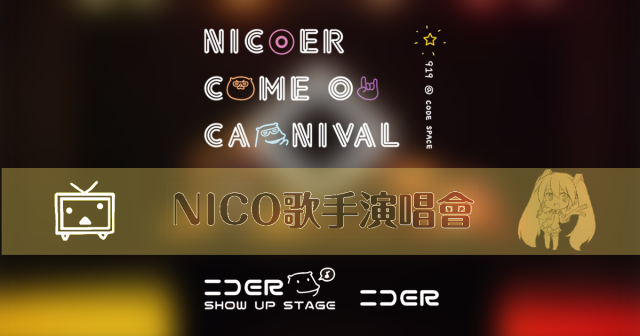 ニコER團隊與CODE SPACE合作《NICOER COME ON CARNIVAL群星@ CODE SPACE》演唱會即將登場,本次活動特邀「ゼーノ♪(跌倒)」、「セイ★(星文)」、「計畫通行」、「猫(♂)」等10年以上資歷歌手,不僅以黃金陣容再創13年ニコ文化榮光,更超越以往空間侷限,以御宅中具代表性的舞台顛覆既有演唱會框架,從燈光、音響設備、出演流程到現場物販都再次升級,於8月14日開始限時搶購「特級早鳥票」,並在9月19日(六)晚上7點準時開唱,享受14位歌手共三小時的不斷電感動,最後更有本次專場限定特典,錯過不再。