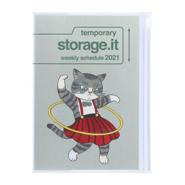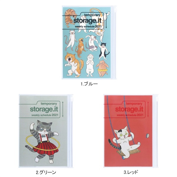 與丈夫一樣愛貓成性的石黑亞矢子,替這次的 2021 年行事曆也畫上了許多富有特色且有趣的貓咪圖樣,在三款不同封面的手帳當中,可以看到不同種類的貓咪們跳著舞的樣子,還有其他像是貓咪搖著呼拉圈款,以及貓咪盪鞦韆的封面。