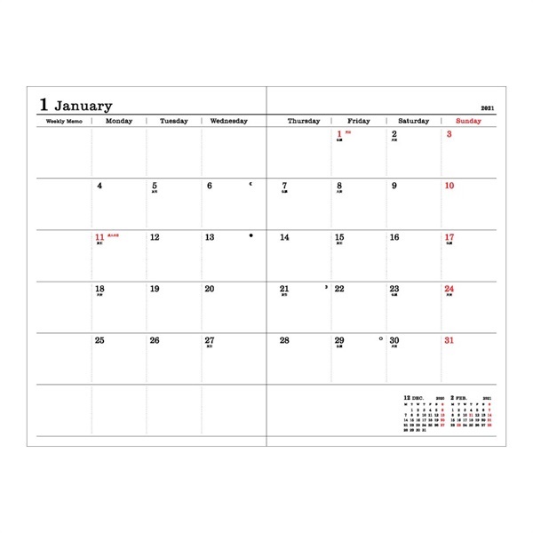 ▼週曆的部分也同樣很簡單,與一般的行事曆內頁並無太大差異