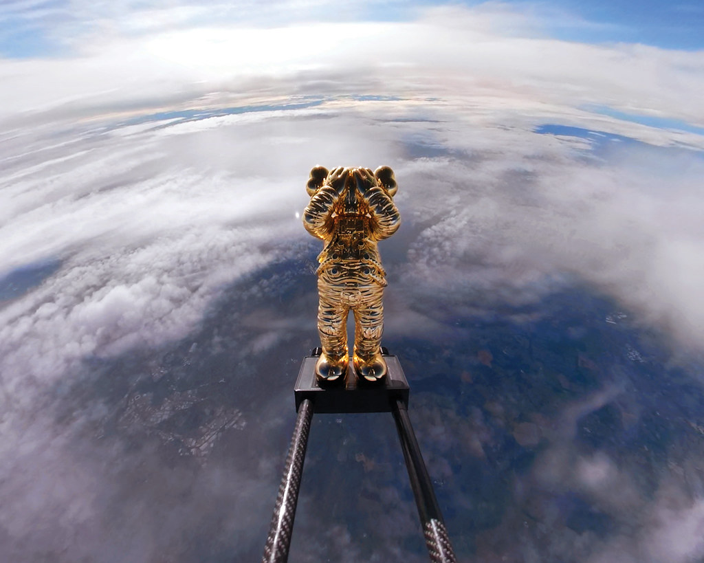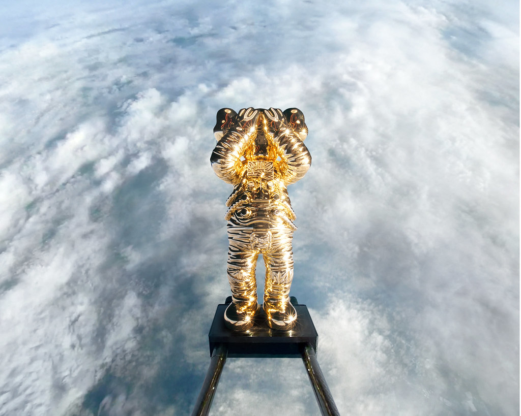 為慶祝與紀念 COMPANION 誕生 20 週年,COMPANION 將帶著世界各地的朋友一起遠離地球繁囂!在《KAWS:HOLIDAY》太空站,穿上太空衣的 COMPANION 乘搭探空氣球以超高速攀升至最高點約41.5公里,抵達平流層。升至最高點後,COMPANION 以無重狀態在太空漫遊,逗留約兩個多小時,再從無人之境返回地球,完成這趟探索太空之旅。整個探索過程由準備升空、啟程至降落歷時約 8 小時,特別以 360 度全景攝錄機紀錄,捕捉 COMPANION 歷史性的升空時刻,也讓各為喜愛 COMPANION 的粉絲們可以跟著 COMPANION 一起完成這趟療癒太空之旅,居高臨下回望地球。