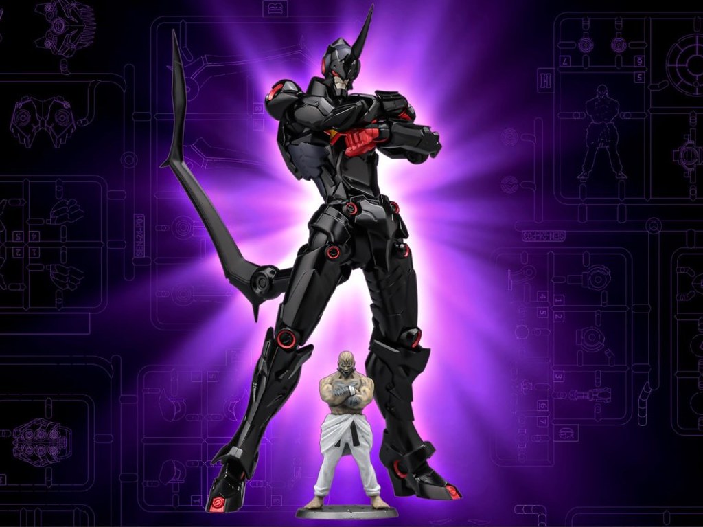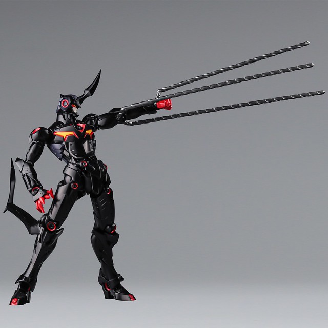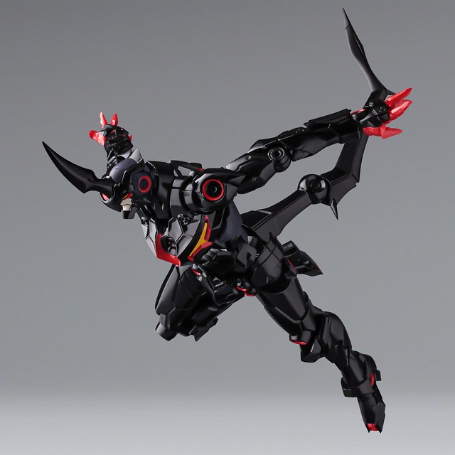 「PLAIOBOT 羅善巖」組裝模型,尺寸全高約150mm,漆黑俐落的裝甲外觀,擁有精密的裝甲刻線與銳利度,利刃形的尾巴凸顯出強大的攻擊性;頭部和胸部等線條複雜的部位已預先進行塗裝加工,將各零件組裝好即可完成螺旋王最強顏面「羅善巖」機體!!