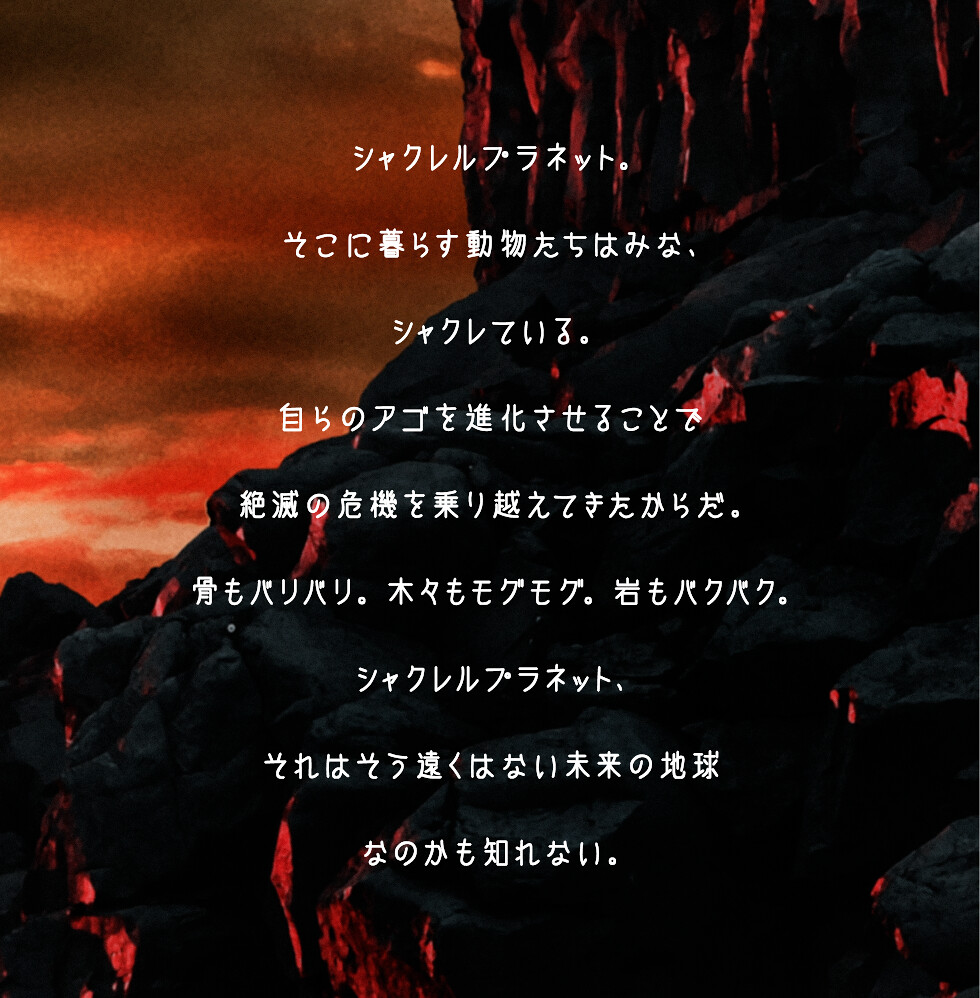 在一個異常奇妙的「戽斗星球」上,生活在那裡的動物們全都有著厚到下巴。為了渡過瀕臨滅絕的重大危機,動物們的下顎進化成巨大且強而有力的模樣,甚至....連岩石也可以輕易地咬碎啊!本次的「黑子篇」就跟白子篇同樣的操作,是把過去推出過的動物重新以黑色為主調進行重塗,塑造出一股硬派的氣勢呢!並在小巧的掌中尺寸刻畫出動物的毛皮質感。