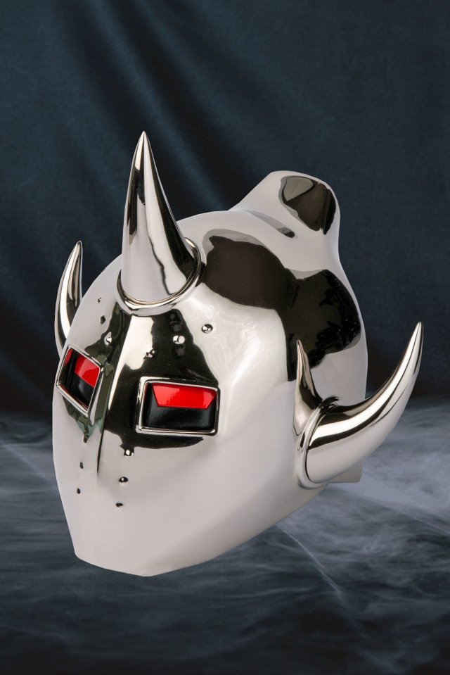 日本販售金屬器具的電商品牌IRON FACTORY,先前與『金肉人』(キン肉マン)40周年紀念友誼展時,合作推出「 惡魔將軍 1/1 面具 鑽石.ver 」 的金屬面具,高達100萬日圓的頂級價格引起不少話題。而這次IRON FACTORY 選擇不同的材質,以硬度作為特色,一樣採1比1的真實比例打造「 惡魔將軍 1/1 面具 莫式硬度4.ver 」,相較於先前的鑽石版本價格較低,定價為220,000日元。
