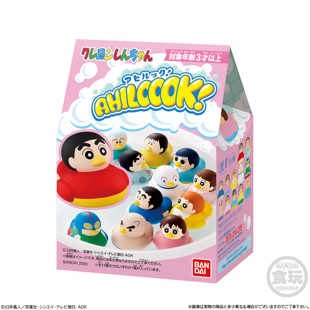 日本萬代玩具公司旗下食玩事業部「BANDAI CANDY」,將可愛動漫角色化為洗澡小鴨的「AHILOOOK!(アヒルック!)」系列,將以《蠟筆小新》為主題,推出「洗澡小鴨!蠟筆小新」系列食玩,一共有 12 款角色,一盒參考售價為 300 日元,預計將於 2020 年 11 月發售。