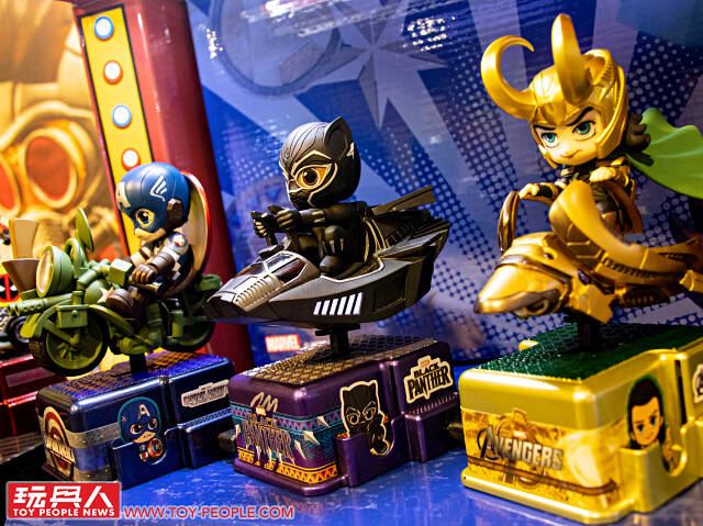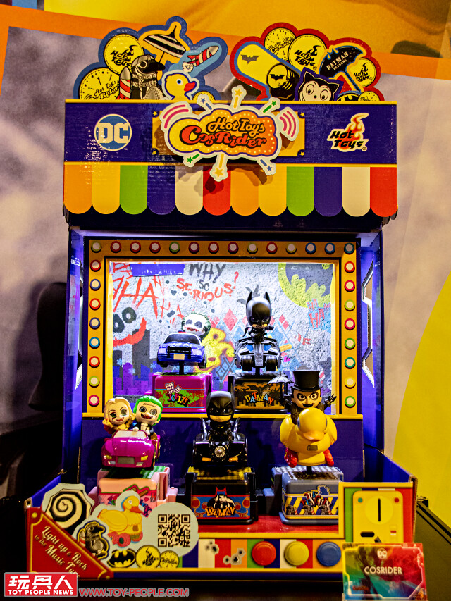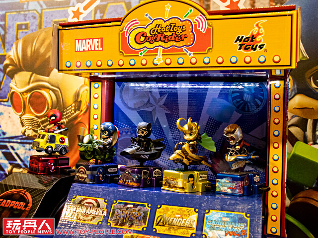 最後來看看前陣子 Hot Toys 的 Cosbaby 全新支線「CosRider」吧!本次直接展出了第一波跟第二波的所有作品,投錢之後就會動起來實在療癒。