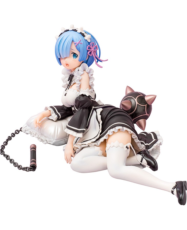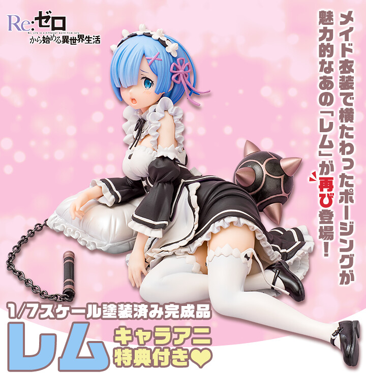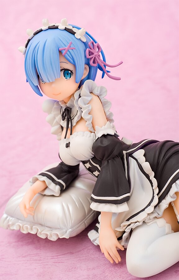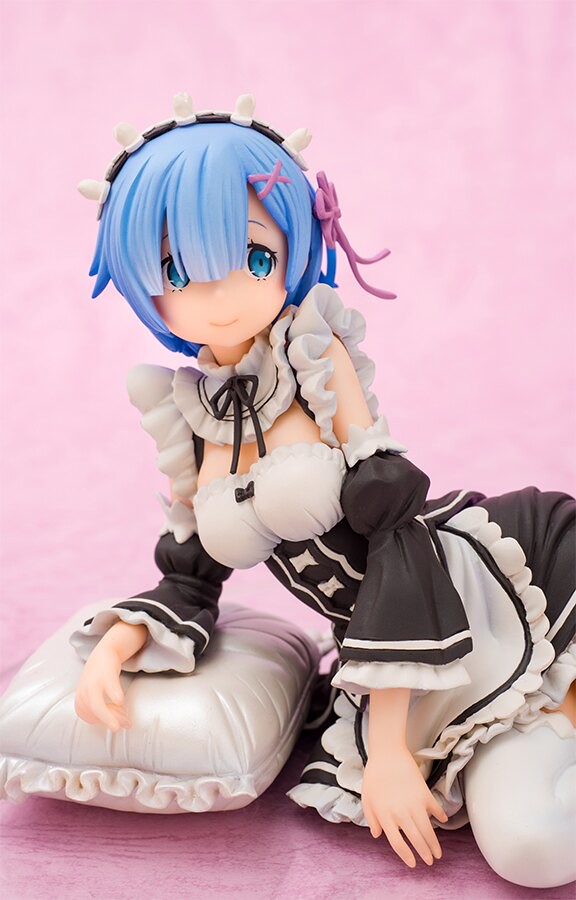 「雷姆 1/7 比例模型」,將漫畫雜誌《月刊Comic Alive》2014 年 5 月號附錄中的插畫立體化呈現,尺寸全高約 105mm(躺臥姿勢),除了誘人的側躺姿勢,再加上紅著臉老爺不要嬌羞困擾的表情,完全意圖使人推倒!整體造型相當吸引人~配件附有專用抱枕、雷姆的招牌武器流星錘,鎖鏈部份更以金屬材質打造,質感與份量十足!