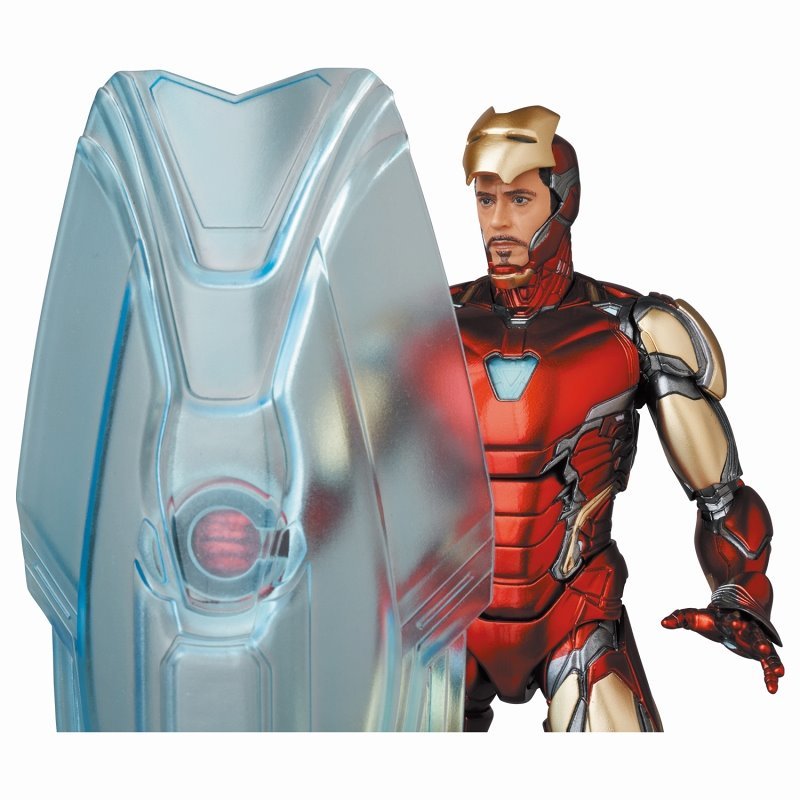 「MAFEX 鋼鐵人馬克 85 終局之戰Ver.」高約 16 公分,再現了有如人體肌肉視覺效果的線條,裝甲的紅、金色部分施以厚重金屬感,大量鐵灰色與機構細節堆砌出來的層次感充分還原,而胸口反應爐上的刻線也沒有放過,配件附屬搶眼的重型集束炮裝置「Nano Lightning Refocuser」、能量光刃(Energy Blade)、一對脈衝炮零件與大型能量盾牌,再加上能裝備在雙手掌心、腳底的橘色能量特效件即可重現鋼鐵人各種帥氣的戰鬥姿態!要買啊~