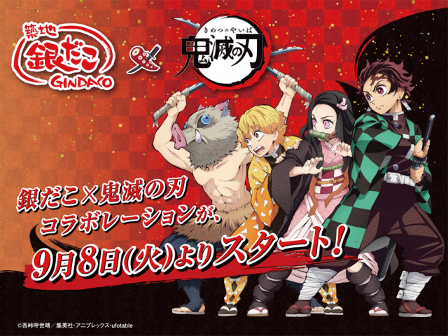 日本連鎖章魚燒店鋪《築地銀章魚燒》(築地銀だこ)日前公布了與人氣動漫作品《鬼滅之刃》展開合作,將於 2020 年 9 月 8 日至 12 月 7 日在日本全國舉行。推出聯名款的章魚燒及各樣週邊商品限量發售。