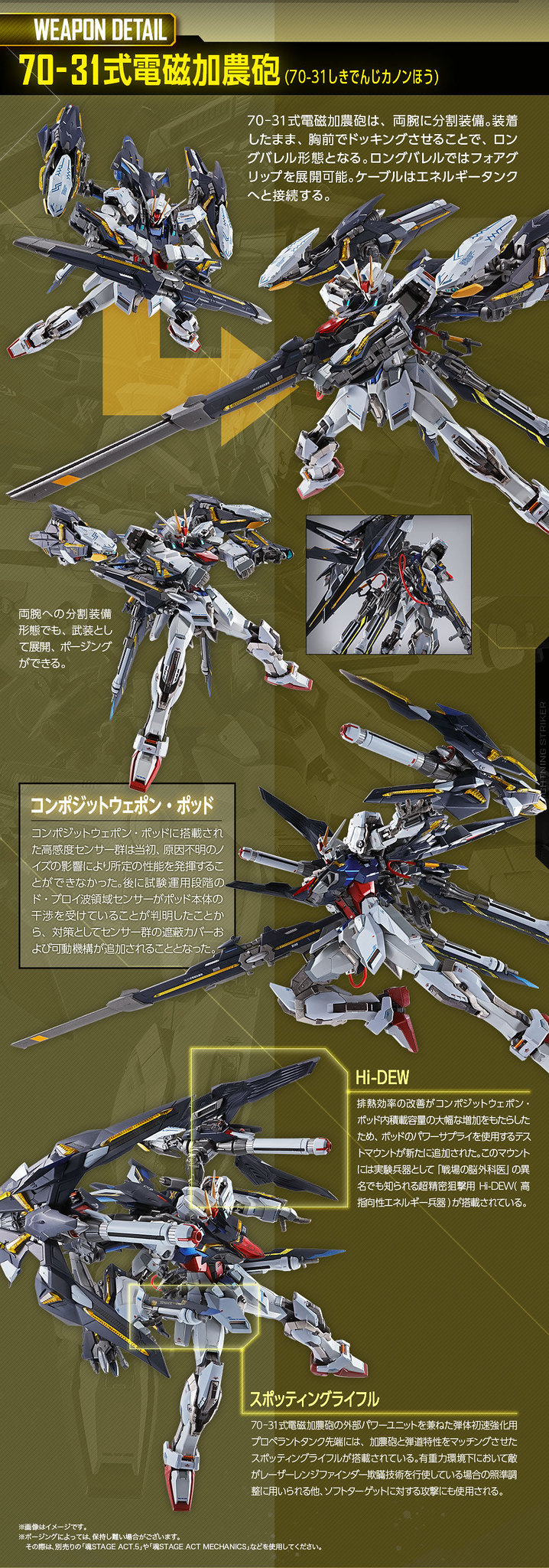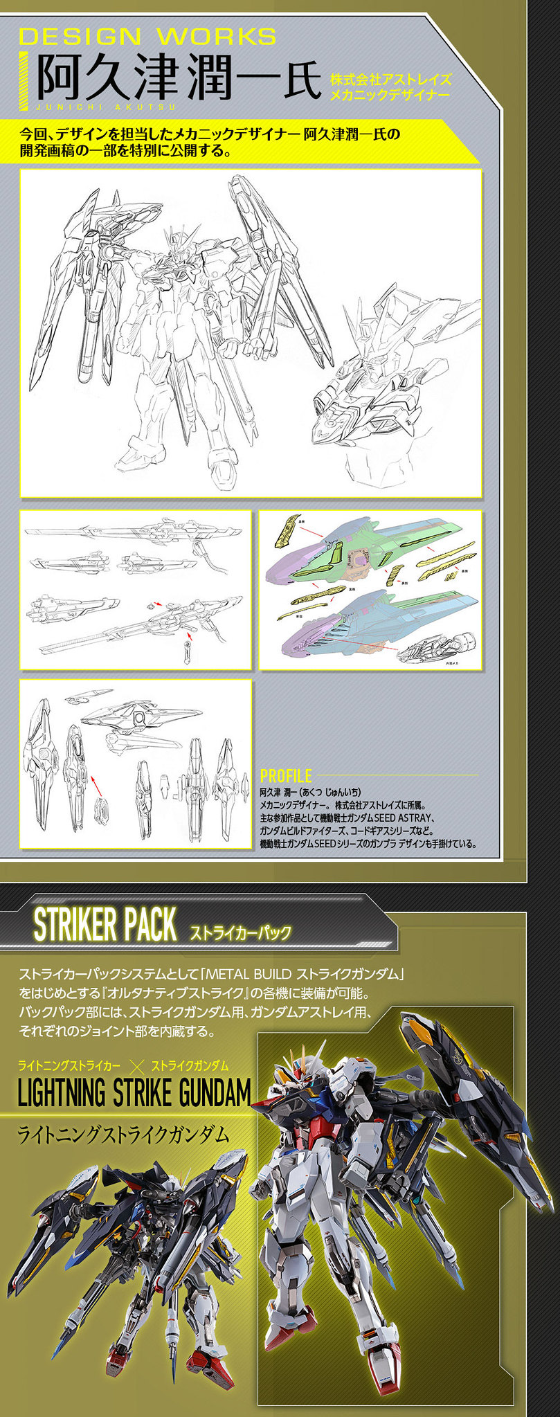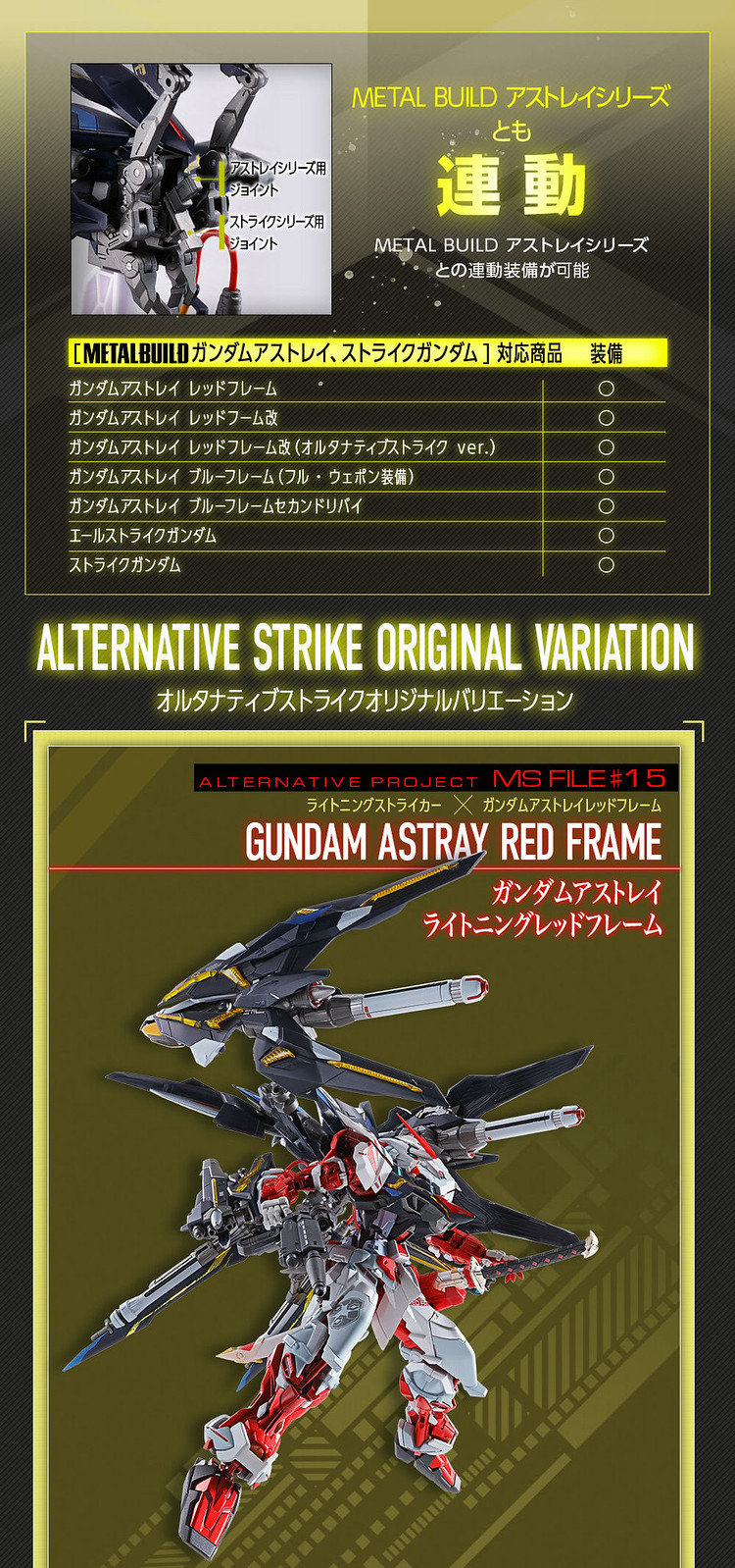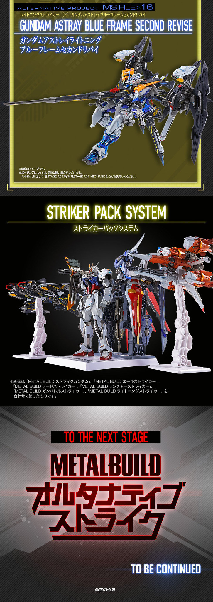 由日本 BANDAI SPIRITS 公司收藏玩具事業部「TAMASHII NATIONS」超人氣合金玩具 METAL BUILD 系列展開的《機動戰士鋼彈SEED》原創 MSV 企劃『METAL BUILD ALTERNATIVE STRIKE』繼翔翼型、重砲型、巨劍型後,再度宣佈攻擊者背包最新作「閃電型攻擊者背包」將於 2020 年 09 月開放預購。此商品為魂商店限定商品。