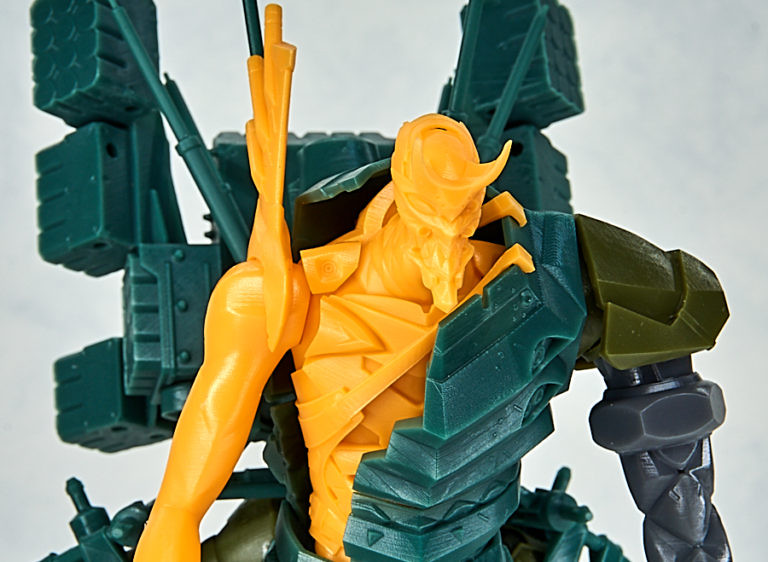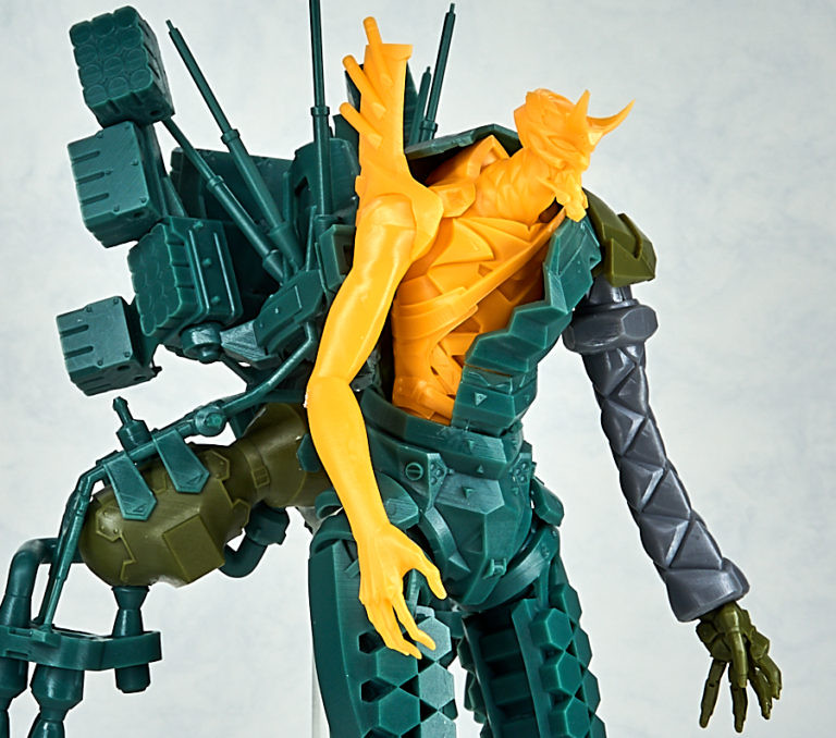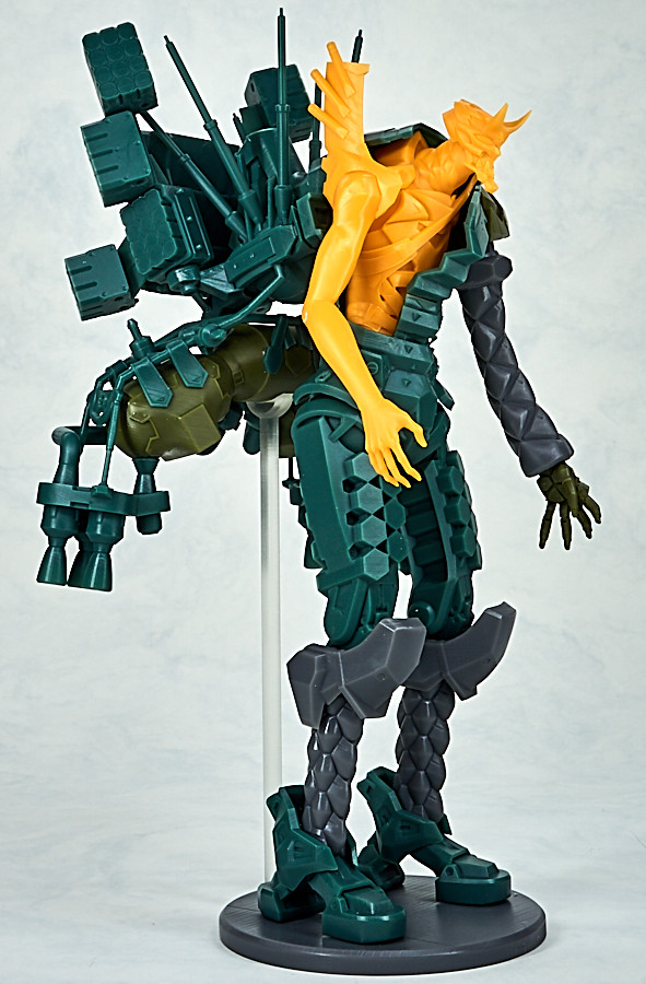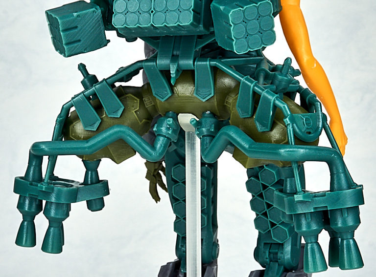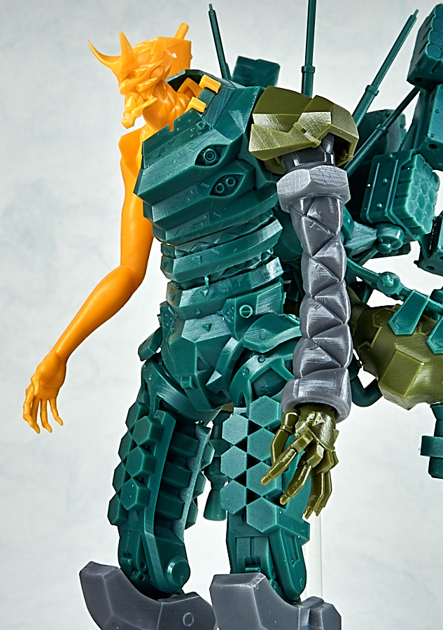 「DGK EVANGELION 新2號機α」3D列印組件模型,再現劇中層次豐富的裝甲細節,組裝後全高達 25 公分,複雜的機體透過 28 個零件就能組成,組裝過程也能細細體驗到盤根錯節的機體設計,與背部巨大的降下用裝備。材質採用光聚合樹脂,零件共有四色成型。各零件帶有3D列印的支撐架,須自行處理後接連部分後再進行組裝。
