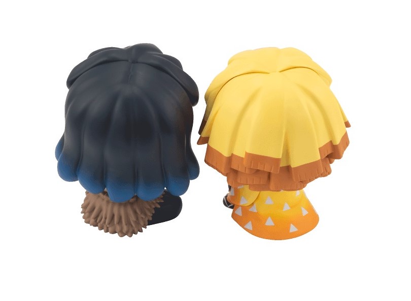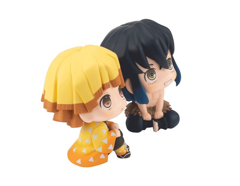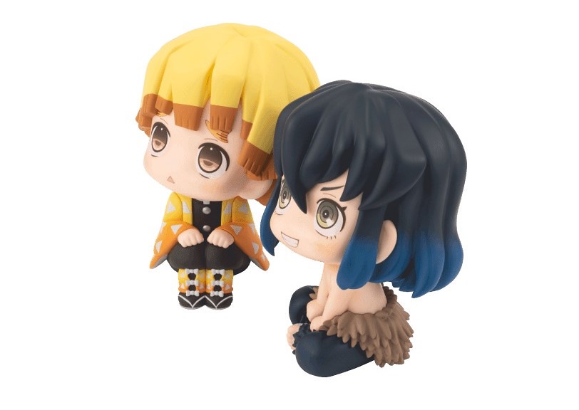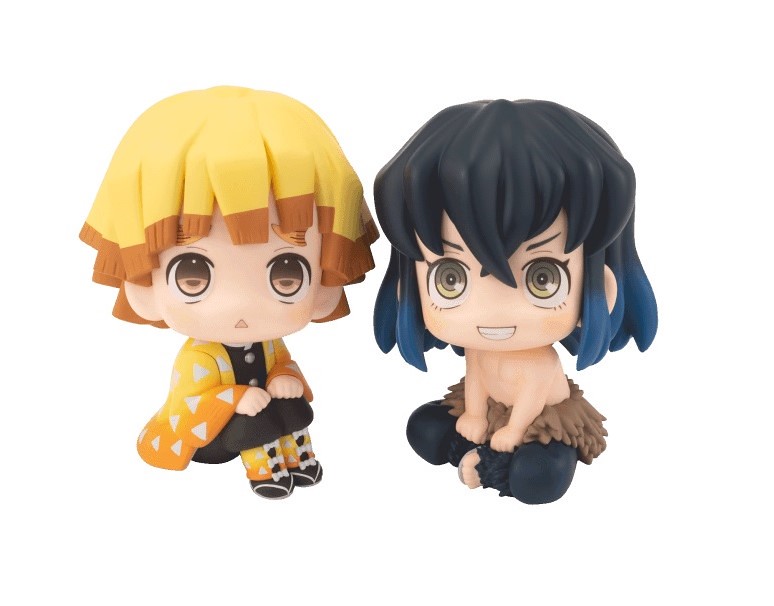 《鬼滅之刃》第二彈的兩款作品分別為「LOOKUP 我妻善逸」、「LOOKUP 嘴平伊之助」,皆以約 110mm 的可愛尺寸呈現,並按照劇中形象還原了服裝的造型與色彩。我妻善逸為彎起身軀,兩隻小手放在膝蓋上的姿勢,並搭配招牌的八字眉擔心表情;嘴平伊之助則是拿下山豬面具後的美麗臉龐,盤起腿的輕鬆坐姿相當可愛,兩者形成趣味的對比~