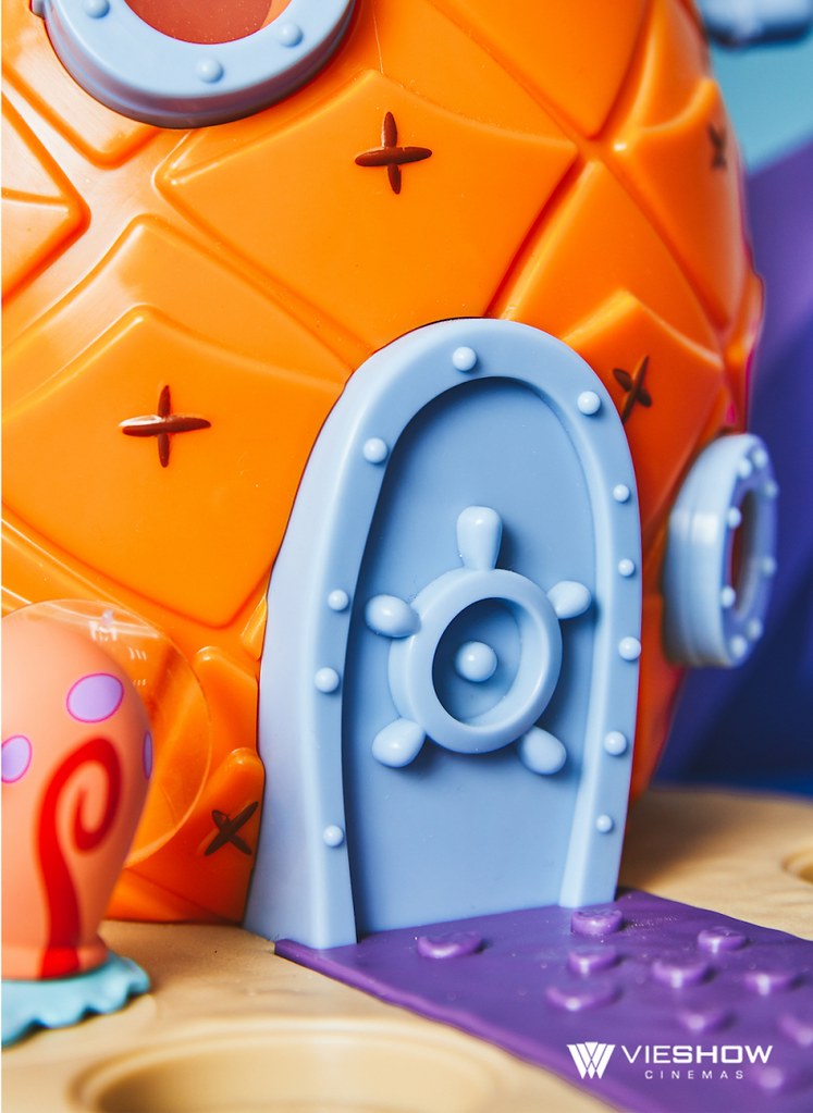 除了兩款造型杯之外,還有豪華版的「深海大鳳梨爆米花桶場景組」只抽不賣抽獎活動,以海綿寶寶的大鳳梨家為場景,附有 4 隻角色吸盤公仔,精緻又可愛!購買兩款造型杯的人才可參加抽獎,有興趣的玩具人可以上威秀粉絲團查詢相關後續抽獎活動~