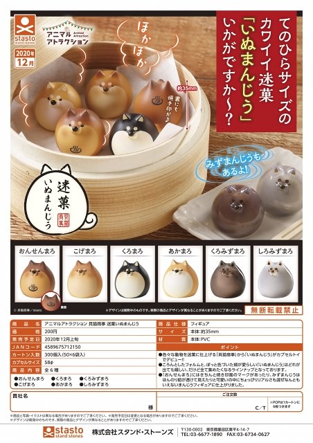日本知名玩具公司「STAND STONES」(スタンド・ストーンズ,簡稱stasto),旗下動物轉蛋系列在推出貓戰車、散步柴犬 ...等多款趣味轉蛋後,這次結合日本設計品牌「貝貓商事」,將超 Q 萌的「迷菓柴犬饅頭」轉蛋化啦~一共有六種款式,一轉參考售價為 200 日圓,預計將於 2020 年 12 月開轉!