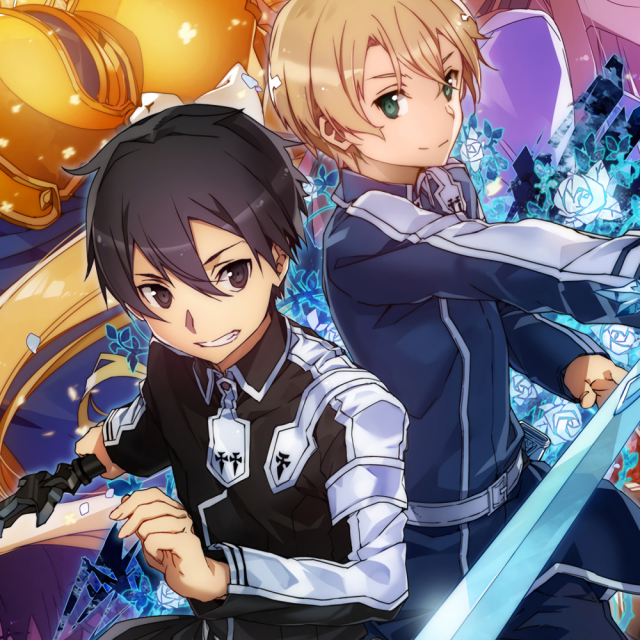 ▼桐人和尤吉歐所持的「夜空之劍」 與「藍薔薇之劍」